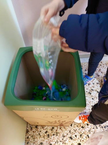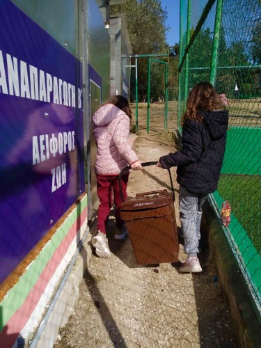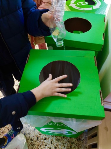 15 Φεβρουαρίου 2023Τα παιδιά μας της Γ΄ τάξης υιοθετούν νέες δεξιότητες και συμπεριφορές που ακολουθούν τα πρότυπα της αειφορίας. Με χαρά φέρνουν στο Σχολείο τη «μικρή υφασμάτινη τσάντα» τους την οποία γεμίζουν στο σπίτι, προς το παρόν με τη βοήθεια των γονιών τους, με πολύτιμους ανακυκλώσιμους θησαυρούς. Πλαστικό, αλουμίνιο, χαρτί, μπαταρίες και υλικό για κομποστοποίηση (φλούδες αυγών, λαχανικά κ.ά.) τοποθετούνται με τάξη και προσοχή στους ειδικούς κάδους του Σχολείου μας. Έπειτα ξαναπαίρνουν την τσαντούλα τους στο σπίτι, για να τη γεμίσουν με νέα υλικά. Μέσα από πολλαπλές δράσεις μυούμε τη νέα γενιά σε σύγχρονες συμπεριφορές, καλλιεργώντας μελλοντικούς πολίτες ευαισθητοποιημένους σε περιβαλλοντικά και κοινωνικά ζητήματα.