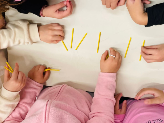 14 Νοεμβρίου 2025Οι μαθητές της Α΄ τάξης παίζουν, μαθαίνουν και με διασκεδαστικό τρόπο κάνουν τα πρώτα τους «μαθηματικά βήματα». Τα παιδιά χωρίστηκαν σε ομάδες και συνεργάστηκαν με σκοπό να εξασκηθούν στους αριθμούς από το 1 έως το 10, να μάθουν πρόσθεση και αφαίρεση. Με χαρά άρχισαν να αναζητούν ποιος αριθμός προηγείται και στη συνέχεια ποιος έπεται του αριθμού–στόχου.