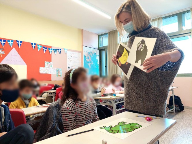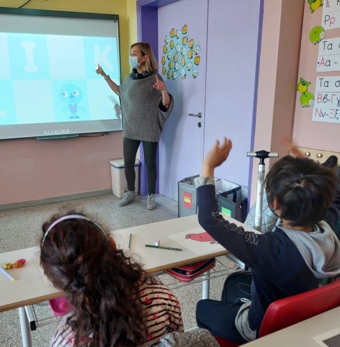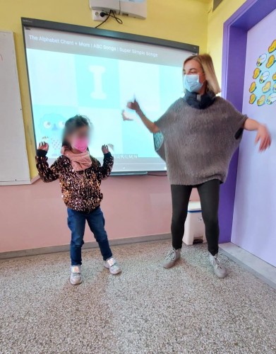 09 Μαΐου 2022Τα πρωτάκια μας έκαναν μια επαναληψούλα στο μάθημα των Αγγλικών μ’ έναν ευχάριστο και δημιουργικό τρόπο. Ειδικότερα, η καθηγήτριά τους άνοιξε τον διαδραστικό της τάξης και… έβαλε εκπαιδευτικά τραγουδάκια. Τα παιδιά μας σηκώθηκαν από τη θέση τους και άρχισαν να τραγουδούν στον ρυθμό της μουσικής την αλφαβήτα, όπως και διάφορα είδη ζώων. Χόρεψαν, τραγούδησαν και ταυτόχρονα, εμπέδωσαν το αλφάβητο.
