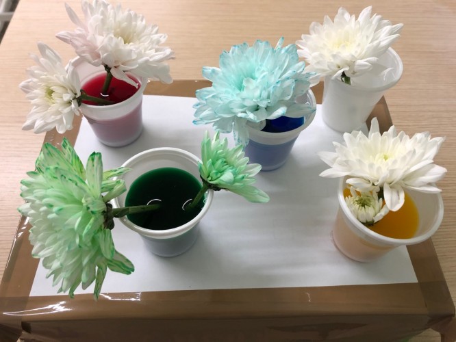 Έτσι λοιπόν, μέσα από το πείραμα μας, τα παιδιά παρατηρήσαν και έμαθαν πώς τα φυτά απορροφούν υγρά μέσω των ριζών και των στελεχών τους. Είδαν ότι οι ουσίες στο νερό, που απορροφούν τα φυτά, επηρεάζουν την ανάπτυξη, το χρώμα και τη γενική υγεία των λουλουδιών και του φυλλώματος που παράγει το φυτό. Η βαφή τροφίμων μπορεί να αλλάξει το χρώμα των λουλουδιών όταν τη βάλουμε στο νερό του φυτού. Όταν οι ρίζες και τα στελέχη απορροφούν το χρωματιστό νερό, αυτό φτάνει τελικά και βγαίνει στα άνθη καθώς τα φυτά χάνουν την υγρασία μέσω των μικροσκοπικών πόρων στα φύλλα τους.