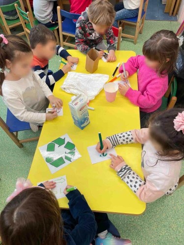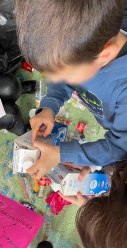 26 Φεβρουαρίου 2024«Ανακύκλωση τώρα!», αναφώνησαν τα προνηπιάκια μας. Τη Δευτέρα 26 Φεβρουαρίου απόλαυσαν ιστορίες σχετικά με την ανακύκλωση, παρατήρησαν άδειες συσκευασίες και προσπάθησαν να τις διαβάσουν με βάση τις εικόνες. Τα παιδιά μας είχαν την ευκαιρία να συνεργαστούν σε μικρές ομάδες και να κατασκευάσουν κάδους ανακύκλωσης για την τάξη τους. Ακόμα, «διαγωνίστηκαν» στο bowling με πλαστικά μπουκάλια και έδωσαν ζωή σε ανακυκλώσιμα αντικείμενα παίζοντας κουκλοθέατρο. Τέλος, κατασκεύασαν για το σπίτι τους έναν χάρτινο κουμπαρά από ανακυκλώσιμα υλικά.