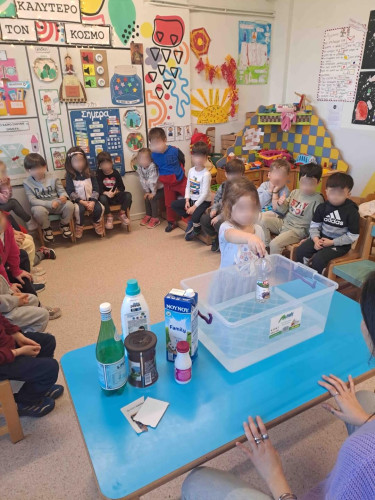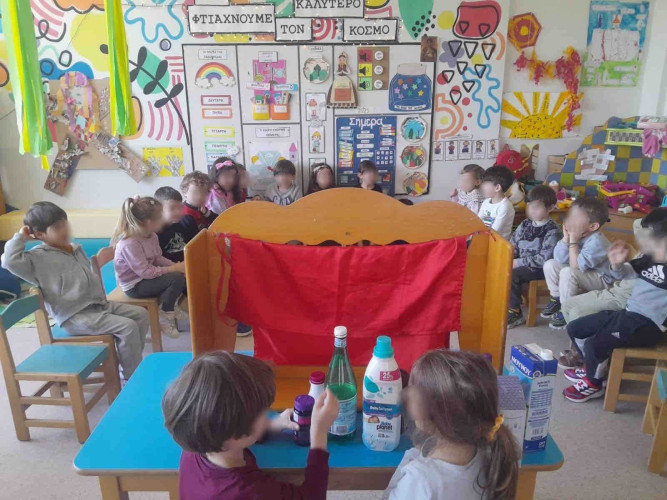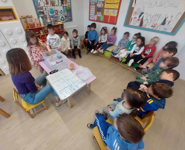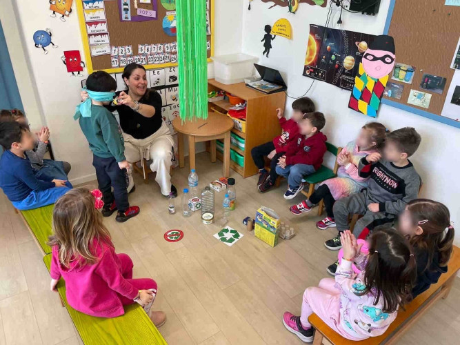 11 Μαρτίου 2025«Ανακύκλωση τώρα»!, είπαν με μια φωνή τα προνηπιάκια μας την εβδομάδα που πέρασε. Απόλαυσαν το παραμύθι της «Κυρίας χάρτινης», άκουσαν τις περιπέτειές της και έμαθαν πως η ανακύκλωση είναι τρόπος ζωής. Στη συνέχεια έφεραν από το σπίτι τους άδειες συσκευασίες προϊόντων, τις ομαδοποίησαν με γνώμονα το υλικό κατασκευής τους και τις τακτοποίησαν στο μικρό «μαγαζάκι» της τάξης. Έπειτα κατασκεύασαν κάδους ανακύκλωσης και συνέβαλαν με τα δικά τους οργανικά απόβλητα στην παραγωγή κομπόστ που πραγματοποιείται στις μονάδες κομποστοποίησης του Σχολείου μας . Τα παιδιά μας αξιοποιώντας μπουκάλια, χαρτιά, εφημερίδες έπαιξαν κουκλοθέατρο με φανταστικές ιστορίες που επινόησαν, ενώ τα ανακυκλώσιμα υλικά επαναχρησιμοποιήθηκαν και «μεταμορφώθηκαν» σε πρωτότυπα εικαστικά έργα τέχνης. Η διασκέδαση συνεχίστηκε στην καταπράσινη αυλή μας όπου εκεί κάθε παιδί , κρατώντας ένα ανακυκλώσιμο ή μη αντικείμενο, κινήθηκε ως πιόνι πάνω στη σκακιέρα. Ακολουθώντας τις οδηγίες που του έδιναν οι συμμαθητές του οι κινήσεις το έφερναν ακόμα πιο κοντά στη βασίλισσα. Συμμετέχοντας σε βιωματικές δραστηριότητες οι μαθητές μας καλλιέργησαν την οικολογική τους συνείδηση και ενημερώθηκαν για τη σπουδαιότητα της ανακύκλωσης.