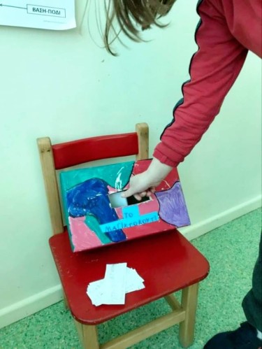 15 Φεβρουαρίου 2022Αυτό έχει μέσα… αριθμούς! Κι αυτό αριθμούς έχει! Κι αυτό έχει ξυλάκια αρίθμησης. Ναι! Μάθαμε να μετράμε μέχρι το δέκα και να λύνουμε και προβλήματα. Αυτό έχει κλωστές. Κι αυτό αγάπη! Μπαίνει η αγάπη σε κουτί; «Όλα τα συναισθήματα μπορούν να μπουν σε κουτιά. Αρκεί να τα γνωρίζουμε. Εμείς αυτό κάναμε στην τάξη, και μάθαμε να τα διαχειριζόμαστε κρατώντας τα θετικά και αφήνοντας τα αρνητικά, λέει το ένα νηπιάκι στο άλλο και συνεχίζουν: «Καθίσαμε και τα καταγράψαμε. Μάθαμε τα θετικά και τα αρνητικά συναισθήματα. Καλά τα θετικά, με τα αρνητικά τι κάνουμε; Τα ταΐζουμε στον Τάκη. Ποιος είναι αυτός; Ο Τάκης ο Τερατάκης, το κουτί που φτιάξαμε για να αφήνουμε εκεί τα άσχημα συναισθήματα. Έλα, ασ’ τον αυτόν, πάμε στην αυλή! Έχουν στήσει και σκυταλοδρομίες και μάντεψε… έχει και εκεί κουτιά!