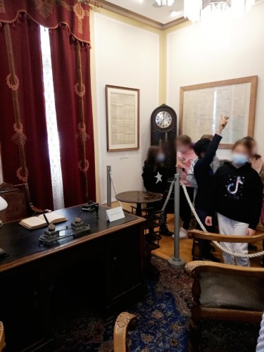 21 Δεκεμβρίου 2021Τα παιδιά μας της Δ’ Τάξης επισκέφτηκαν ανά τμήμα το Μουσείο του Μακεδονικού Αγώνα και περιηγήθηκαν στις μόνιμες εκθέσεις του. Ειδικότερα, παρακολούθησαν το εκπαιδευτικό πρόγραμμα «Αποκρυπτογραφώντας τον Μακεδονικό Αγώνα» και έτσι, είχαν την ευκαιρία να μάθουν και βιωματικά για τις μάχες του μετώπου, για τους αγωνιστές, αλλά και τις μεθόδους που αυτοί χρησιμοποιούσαν. Όλα όσα έμαθαν τα παιδιά μας ήταν ενδιαφέροντα, αλλά αυτό που τα ενθουσίασε και τα ενεργοποίησε περισσότερο ήταν το κρυπτογραφικό αλφάβητο!