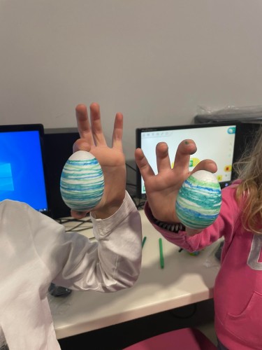 27 Απριλίου 2022Πώς λέτε να τίμησαν το Πάσχα τα παιδιά μας του τμήματος Πληροφορικής, Πολυμέσων & Ρομποτικής; Έβαψαν τα δικά τους πρωτότυπα αυγά! Με τον κατάλληλο εξοπλισμό LEGO κατασκεύασαν μια σούβλα και ο κάθε μαθητής έβαλε τις δικές του πινελιές στα πασχαλινά αυγά.