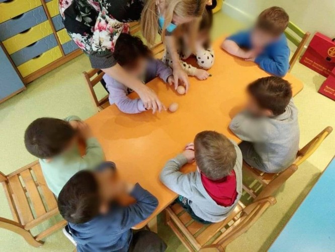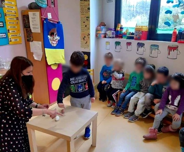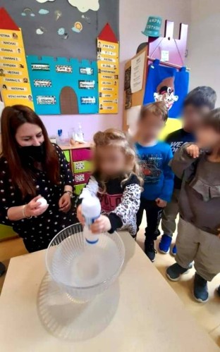 11 Απριλίου 2022Τα μικρά μας «Πρότυπα 2-4» προετοιμάζονται για την εβδομάδα του Πάσχα και μαθαίνουν να ξεχωρίζουν τα αυγά… Ποια έχουν βράσει και ποια είναι ωμά; Τα παιδιά μας έκαναν δύο πειράματα. Στο πρώτο παρατήρησαν και ξεχώρισαν το ωμό από το βραστό αυγό. Το ωμό στριφογυρνάει αργά, ενώ το βραστό γρήγορα. Στο δεύτερο έριξαν στη γαβάθα που είχε σκέτο νερό ένα αυγό και είδαν ότι αυτό βυθίστηκε, ενώ, όταν έριξαν αρκετό αλάτι, αυτό επέπλευσε. Είχε πολύ πλάκα! Παράλληλα, τα πιο μικρά μας ξεκίνησαν τις πασχαλινές κατασκευούλες και έκαναν τις πρώτες τους γιορτινές ζωγραφιές χρησιμοποιώντας υλικά καθημερινής χρήσης.