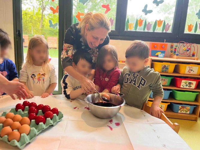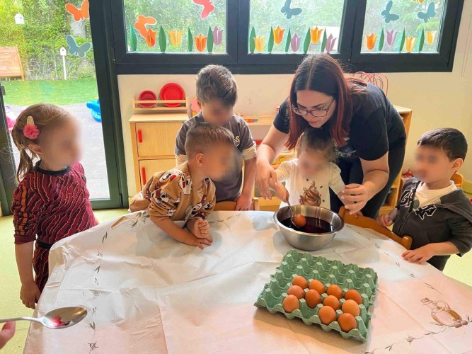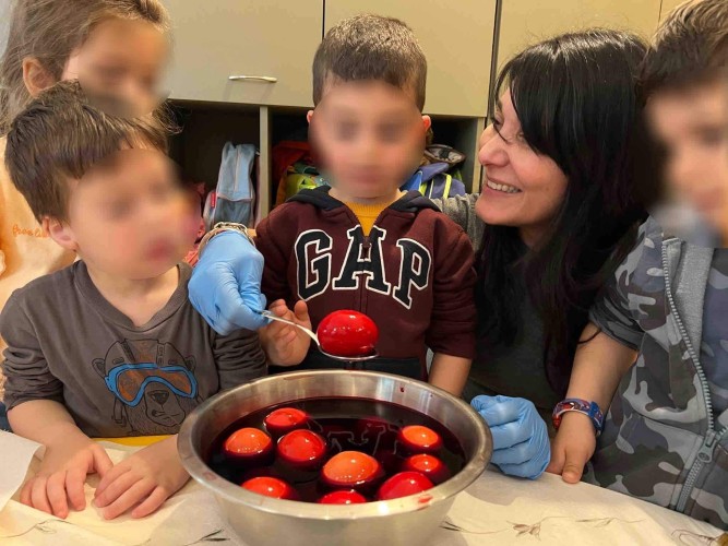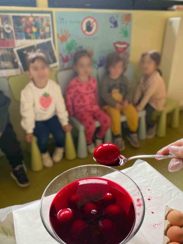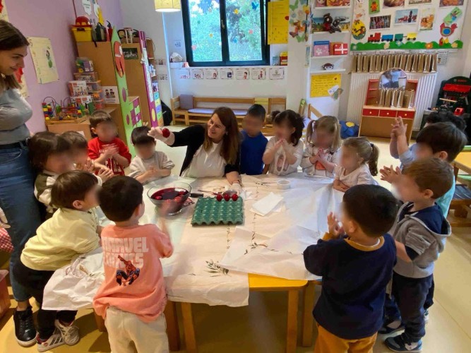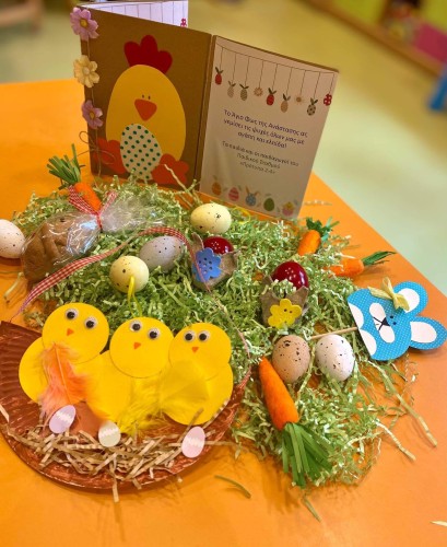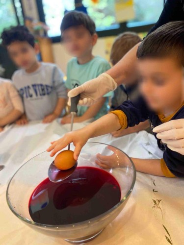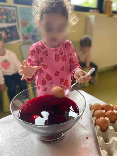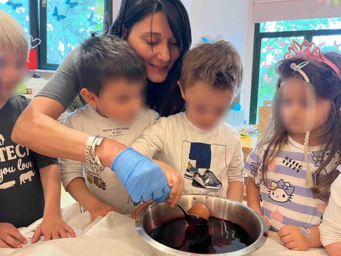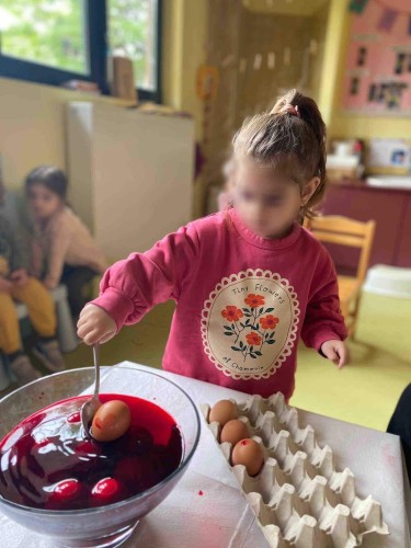28 Απριλίου 2024Ακολουθώντας τις παραδόσεις του τόπου μας τα παιδιά μας του Παιδικού Σταθμού «Πρότυπα 2-4» έβαψαν τα πασχαλινά τους αβγά την Παρασκευή 26 Απριλίου. Στην αρχή, έριξαν την κόκκινη βαφή και το ξίδι μέσα σ’ ένα δοχείο με ζεστό νερό. Στη συνέχεια παίρνοντας κουτάλια τοποθέτησαν προσεκτικά μέσα στο μπολ ένα ένα τα αβγουλάκια με τα μικρά τους χεράκια. Έπειτα από λίγη ώρα ήταν όλα έτοιμα και οι μαθητές μας άρχισαν να ανυπομονούν για… τα τσουγκρίσματα της Ανάστασης.