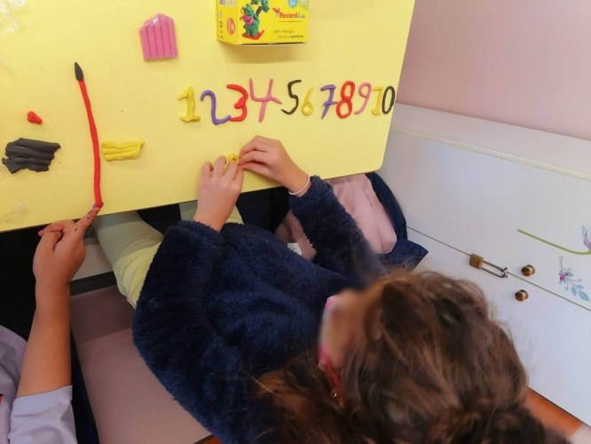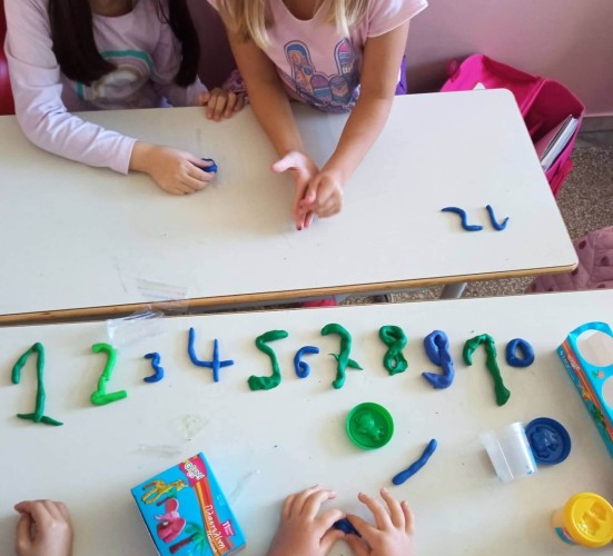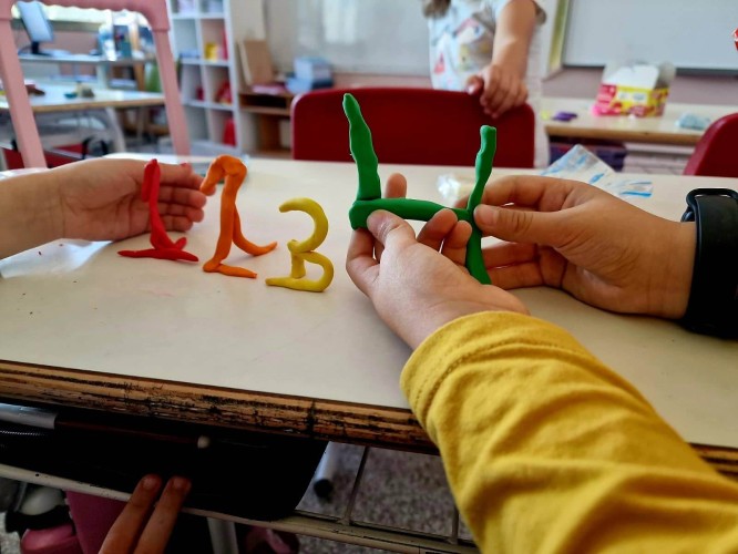 21 Οκτωβρίου 2022Τα παιδιά μας της Α’ Δημοτικού μαθαίνουν με ευχάριστο και δημιουργικό τρόπο τους αριθμούς, αλλά και τα γράμματα της αλφαβήτας αναπαριστώντας τά με χρωματιστές πλαστελίνες.