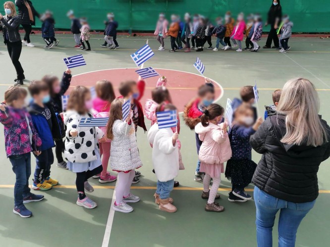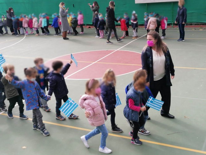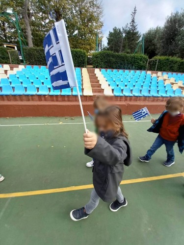 28 Οκτωβρίου 2021Τα νήπια και τα προνήπιά μας τίμησαν την εθνική μας επέτειο φτιάχνοντας με τις δασκάλες τους στεφάνι προς τιμήν των πεσόντων και αποδίδοντάς το στο Ηρώον του Πανοράματος. Επίσης, παρέλασαν με τις αυτοσχέδιες σημαιούλες τους και τα καπελάκια τους για την ελευθερία στο γήπεδο του σχολείου μας αποσπώντας το θερμό χειροκρότημα του διδακτικού μας προσωπικού! Με την ολοκλήρωση της παρέλασης έγινε έπαρση της ελληνικής σημαίας από τη διευθύντρια του Νηπιαγωγείου μας και όλοι μαζί τραγουδήσαμε τον εθνικό ύμνο. Τέλος, καθ’ ολή τη διάρκεια της εβδομάδας τα παιδιά μας συζήτησαν για τον αγώνα του ’40 δημιουργώντας διάφορες κατασκευές και ζωγραφιές, ενώ κάθε τμήμα απήγγειλε στην τάξη του και από ένα ποιηματάκι για την ελευθερία και τους αγωνιστές της.