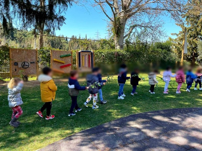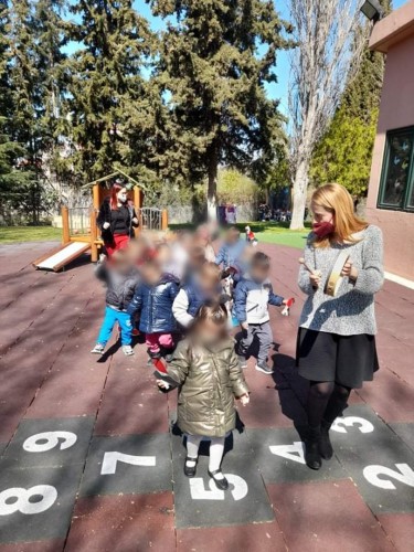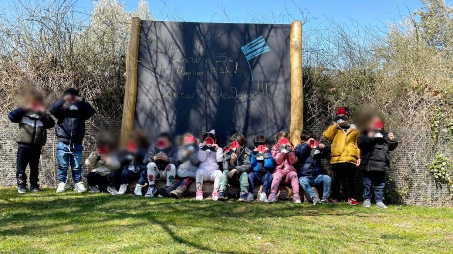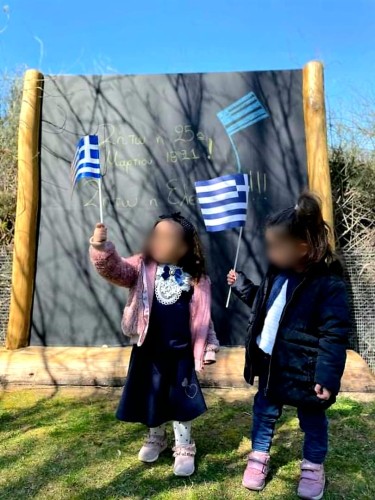 - Έκαναν παρέλαση στην αυλή του Σχολείου κουνώντας περήφανα τις σημαιούλες τους.