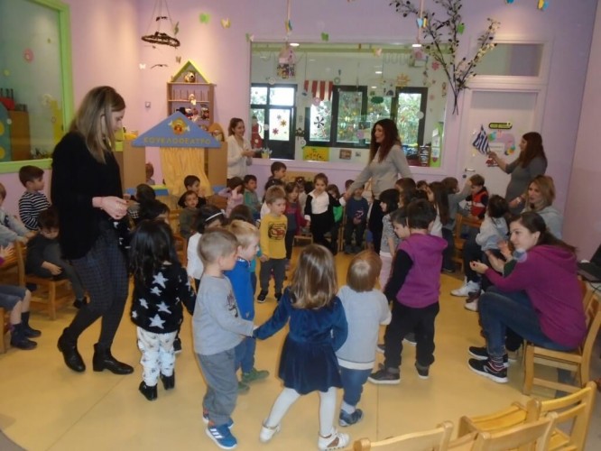 Και επειδή παράδοση και ιστορία συμβαδίζουν, οι μικροί μας μαθητές ήρθαν σε επαφή με τη δημοτική μας μουσική, χορεύοντας και τραγουδώντας παραδοσιακά τραγούδια.