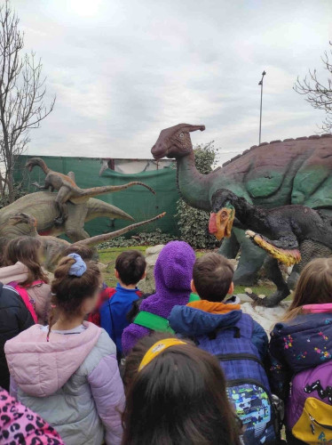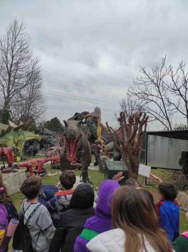 13 Φεβρουαρίου 2025Εσείς έχετε κάνει ταξίδι στο παρελθόν έως και 230 εκατομμύρια χρόνια; Την Τετάρτη 12 και την Πέμπτη 13 Φεβρουαρίου οι μαθητές μας της Β΄ τάξης, στο πλαίσιο των Εργαστηρίων Δεξιοτήτων και της ενότητας για το περιβάλλον και διαθεματικά με το μάθημα της Μελέτης Περιβάλλοντος και την ενότητα «Τα ζώα», επισκέφθηκαν το Περιβαλλοντικό Πάρκο Δεινοσαύρων. Εκεί, περιπλανήθηκαν μέσα σε ένα «σπήλαιο» και έμαθαν ότι τα εργαλεία των πρώτων ανθρώπων ήταν κατασκευασμένα από χώμα, πέτρα και κόκκαλα. Στη συνέχεια, πέρασαν μέσα από το στόμα του θρυλικού τυραννόσαυρου Ρεξ και συνάντησαν πολλούς δεινόσαυρους και άλλα θηλαστικά στις πραγματικές τους διαστάσεις… Τέλος, είδαν από κοντά πραγματικά απολιθώματα από μαμούθ και από τις γιγάντιες χελώνες, «Τιτανοχελώνες»! Με βιωματικό τρόπο τα παιδιά μας γνώρισαν την ιστορία της Γης και πληροφορήθηκαν για τις κλιματικές αλλαγές που έπαιξαν καίριο ρόλο στην εξέλιξη των ειδών.