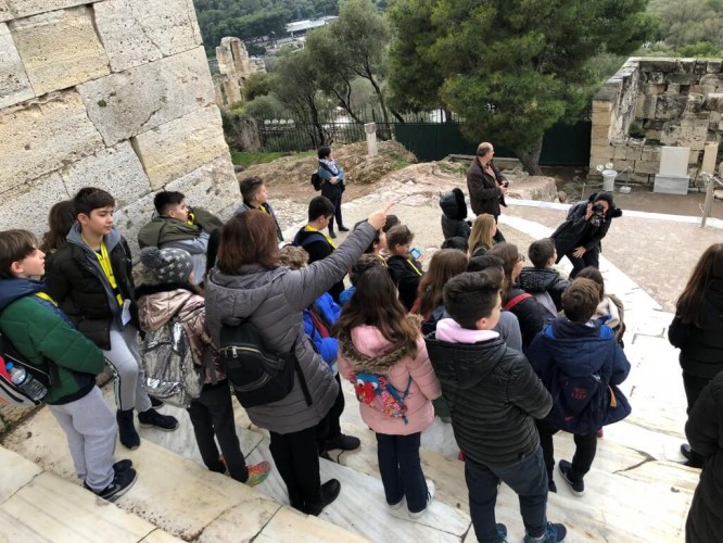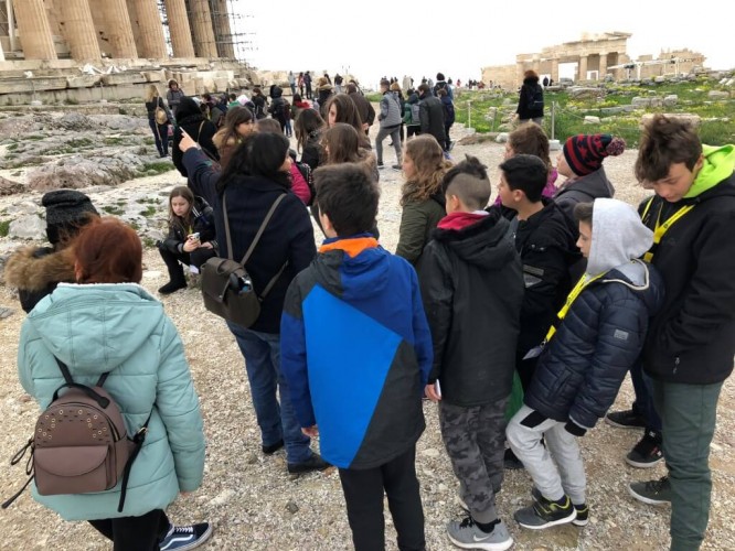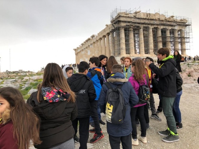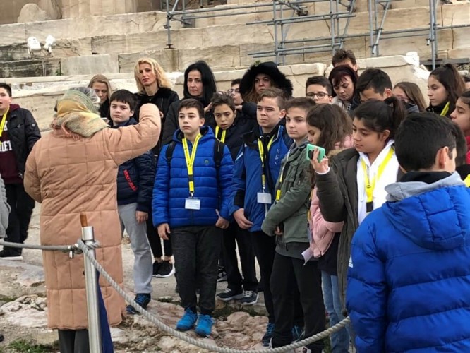 10 Φεβρουαρίου 2018Δεύτερη μέρα της τριήμερης εκπαιδευτικής επίσκεψης στην Αθήνα και μαθητές της ΣΤ΄ και συνοδοί, εκπαιδευτικοί και γονείς αρχίσαμε από νωρίς. Γύρος στ’αξιοθέατα του ιστορικού κέντρου και θαυμάζουμε από κοντά το μεγαλείο του ελληνικού πολιτισμού. Βαδίζουμε σε αρχαία μονοπάτια στην Ακρόπολη και ολόκληρη η αρχαία πόλη ανασαίνει κάτω απ’ τα πόδια μας. Ήρωες, σπουδαίοι μεγάλοι Έλληνες μας αφουγκράζονται κάτω από το βάθος των δρόμων. Όποιον και αν πάρεις θα τους συναντήσεις.