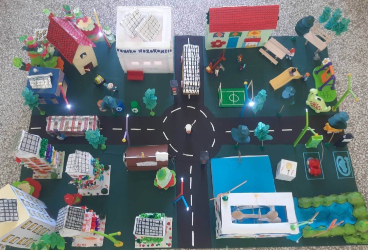 17 Ιουνίου 2024Τη δεύτερη θέση ανάμεσα σε 64 συμμετοχές πήρε το Σχολείο μας στον διαγωνισμό Follow Green της Σχολικής Δράσης Ευαισθητοποίησης «Think SMART, Think your CITY» που πραγματοποίησε ο Δήμος Πυλαίας-Χορτιάτη σε συνεργασία με τις Διευθύνσεις Πρωτοβάθμιας και Δευτεροβάθμιας Εκπαίδευσης Ανατολικής Θεσσαλονίκης. Η πρόταση των μαθητών μας της Γ΄ τάξης ήταν ο σχεδιασμός μιας έξυπνης πόλης, εναρμονισμένης με τις αρχές της αειφόρου ανάπτυξης, της «Προτυπούπολης», η οποία δημιουργήθηκε στο πλαίσιο των Εργαστηρίων Δεξιοτήτων «Καινοτομώ και Δημιουργώ 2024». Η φωτεινή αυτή πολιτεία τροφοδοτείται με φωτοβολταϊκά που συλλέγουν την ηλιακή ενέργεια, ενώ οι σταθμοί φόρτισης των ηλεκτρικών αυτοκινήτων ηλεκτροδοτούνται από τις ανεμογεννήτριες, οι οποίες αξιοποιούν τη δύναμη του αέρα. Ακόμα, τα παιδιά μας δημιούργησαν τις «πράσινες» ταράτσες, με σκοπό αυτές να απορροφούν ποσότητες νερού, μειώνοντας έτσι τον κίνδυνο πλημμύρας, και παράλληλα να συμβάλλουν στη βελτίωση της ποιότητας του αέρα. Στη δική μας έξυπνη πόλη φροντίζουμε σε κάθε παρέμβασή μας το ενεργειακό μας αποτύπωμα να είναι όσο το δυνατό μικρότερο, δείχνοντας υπευθυνότητα και σεβασμό στο φυσικό περιβάλλον.
