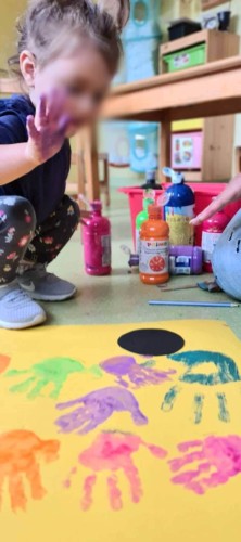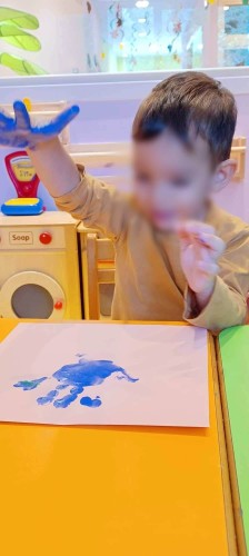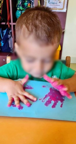 - Κάναμε χρωματιστά τυπώματα με τις παλάμες και ανακαλύψαμε τη σημασία της επαφής