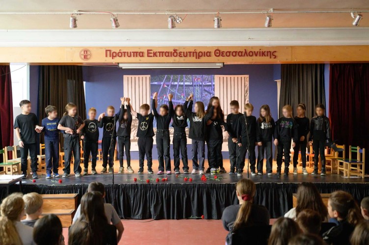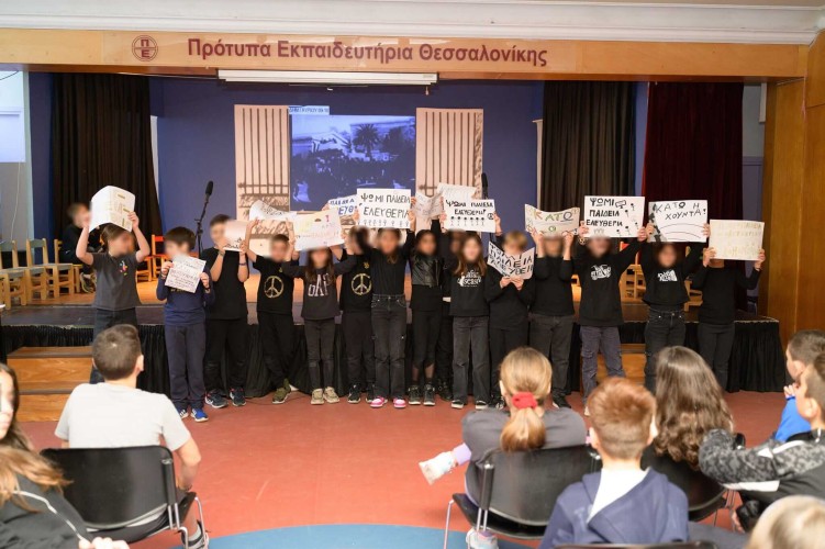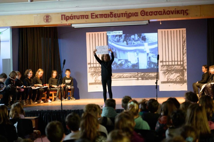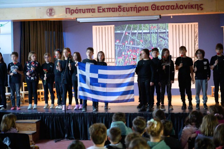 17 Νοεμβρίου 2023Την Παρασκευή 17 Νοεμβρίου οι μαθητές και οι μαθήτριες της Δ΄ τάξης τίμησαν την επέτειο συμπλήρωσης 50 χρόνων από την εξέγερση του Πολυτεχνείου. Τα παιδιά μας παρουσίασαν στους συμμαθητές τους μια συγκινητική παράσταση για τα γεγονότα που εκτυλίχθηκαν στις 17 Νοεμβρίου 1973, υπενθυμίζοντας σε όλους μας πως η ελευθερία είναι το ύψιστο δικαίωμα. Μέσα από διηγήσεις, εικόνες, ηχητικά ντοκουμέντα και τραγούδια έφεραν στη μνήμη μας την εξέγερση των φοιτητών που αναδεικνύει ότι οι νεανικές ψυχές αντιστέκονται σε κάθε μορφή καταπίεσης και δεν παύουν ποτέ να αγωνίζονται για τα ιδανικά της ισότητας, της ελευθερίας, της ειρήνης και της δημοκρατίας.