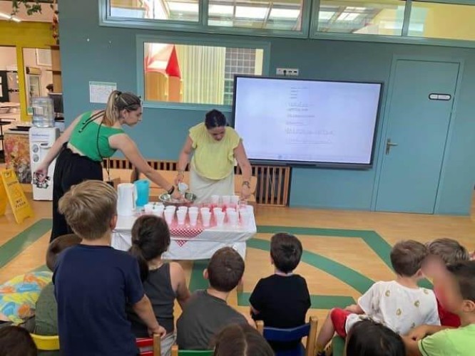 15 Ιουλίου 2023Άλλη μια εβδομάδα της 11μηνης φοίτησης έφτασε στο τέλος της. Τα παιδιά μας του Νηπιαγωγείου έφερναν εις πέρας τις διασκεδαστικές αποστολές που κλήθηκαν να αντιμετωπίσουν. Έφτιαξαν ενημερωτική αφίσα και έντυπο με πληροφορίες για την μόλυνση των θαλασσών με στόχο να κινητοποιήσουν μικρούς και μεγάλους ώστε να γίνουν και εκείνοι εθελοντές για την προστασία του περιβάλλοντος. Οι μαθητές μας με τις διαδραστικές δραστηριότητες αποκτούν οικολογική συνείδηση και με μικρές καθημερινές πράξεις μαθαίνουν να σέβονται, να αγαπούν και να φροντίζουν τον πλανήτη. Τέλος, στην αυλή του Σχολείου μας γεύτηκαν το δροσερό ζελέ φρούτων που έφτιαξαν με τα χεράκια τους κλείνοντας φυσικά τη μέρα τους με πολύ παιχνίδι.