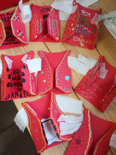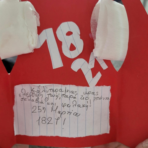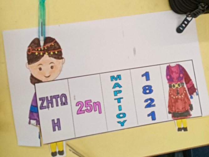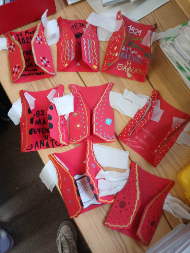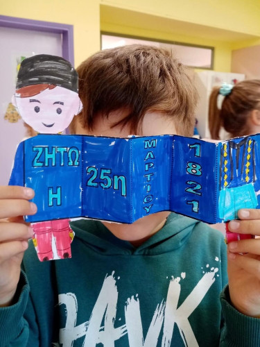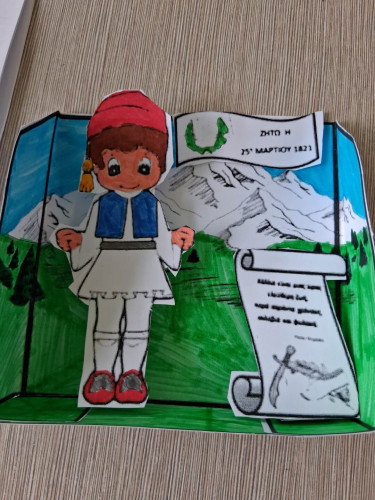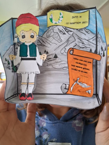 24 Μαρτίου 2025Οι μαθητές με αφορμή την εθνική επέτειο της 25ης Μαρτίου δημιούργησαν όμορφες και πρωτότυπες κατασκευές για να τιμήσουν με τον δικό τους μοναδικό τρόπο τους ήρωες της Επανάστασης. Με μεγάλη επιμέλεια τα παιδιά κατασκεύασαν το γιλέκο από τη στολή του τσολιά, φιλοτέχνησαν τον δικό τους πάπυρο με τους στίχους από τον «Θούριο» του Ρήγα Φερραίου και ζωγράφισαν την παραδοσιακή φορεσιά της Αμαλίας. Τα πρωτάκια μας με τις ζωγραφιές τους μας υπενθύμισαν πως αυτή η ημέρα είναι διπλά σημαντική για την χώρα μας καθώς γιορτάζεται και ο Ευαγγελισμός της Θεοτόκου.