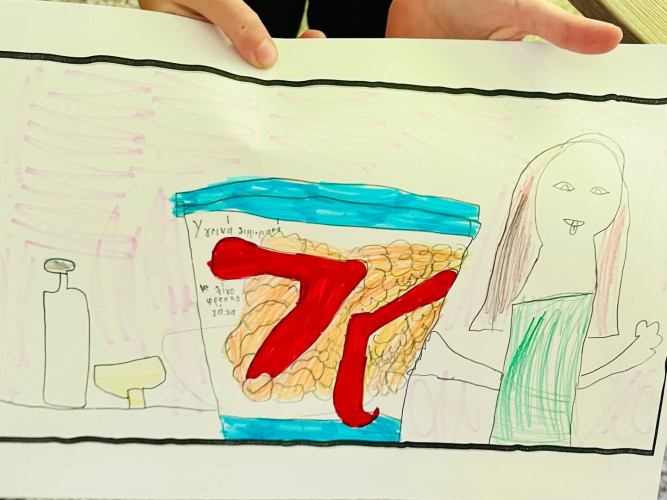 31 Οκτωβρίου 2025Οι μαθητές μας της Β΄ τάξης μπήκαν στον ρόλο των διαφημιστών και ανέλαβαν να ερευνήσουν την αγορά, ώστε να μάθουν τα πάντα για τη σωστή προώθηση προϊόντων. Σε πρώτο στάδιο ξεκίνησαν να διαβάζουν τις εμπορικές συσκευασίες, με σκοπό να σημειώσουν τα συστατικά που περιέχει το κάθε αγαθό. Σιγά σιγά άρχισαν να γνωρίζουν και να εξοικειώνονται με τους μηχανισμούς παραγωγής δημιουργικών ιδεών, που έχουν ως στόχο να κεντρίσουν το ενδιαφέρον του καταναλωτή. Μετά από πολλές συζητήσεις και στρατηγικές σχεδίασαν τη δική τους διαφήμιση παρουσιάζοντας το προϊόν τους με χρώμα και φαντασία. Έτσι, τα παιδιά αντιλήφθηκαν βιωματικά τι πρέπει να γνωρίζει ένας συνειδητοποιημένος και με κριτική σκέψη καταναλωτής