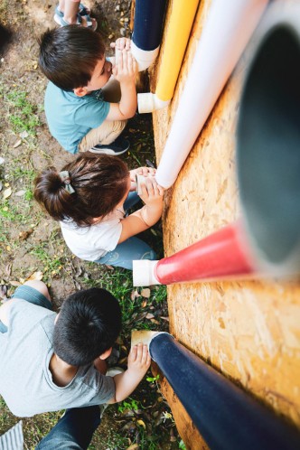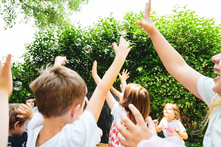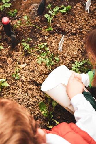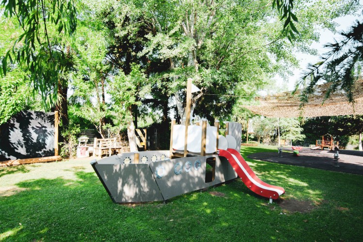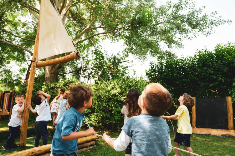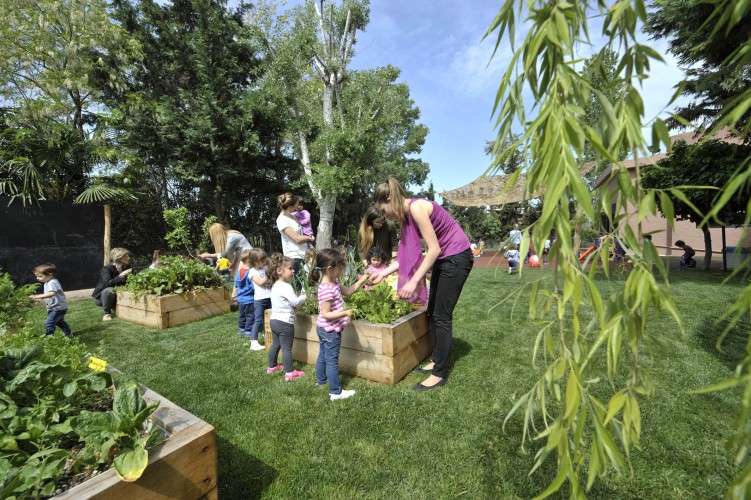Επιπλέον, τα παιδιά απολαμβάνουν την υπέροχη καταπράσινη αυλή μας, τον αυλόγυρο του Σχολείου μας, με τη φύση σε όλο της το μεγαλείο. Παρατηρούν με ενθουσιασμό τον κύκλο της ζωής των λουλουδιών και μαθαίνουν τα ονόματα διάφορων φρούτων και λαχανικών στον μαγευτικό λαχανόκηπο που τα ίδια δημιουργούν. Καθημερινά ανακαλύπτουν μικρά πλασματάκια του ζωικού βασιλείου, "μαγειρεύουν" στην εξωτερική κουζίνα μας, τραγουδούν, απασχολούνται με παιχνίδια δεξιοτήτων και ψυχαγωγούνται στο σύνθετο της παιδικής χαράς.