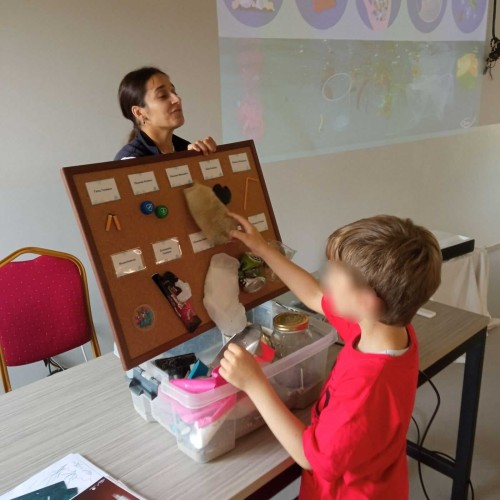 Έπειτα, πήραν μέρος σε βιωματικά παιχνίδια (κοσκίνισμα άμμου, συλλογή μικροπλαστικών και έρευνα για απορρίμματα με μεγεθυντικό φακό) με σκοπό να κατανοήσουν την απαραίτητη ανάγκη για την προστασία της θάλασσας και την αξία του σεβασμού στο περιβάλλον.