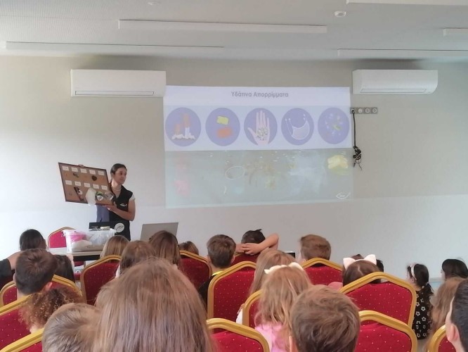 Τα παιδιά μας παρακολούθησαν μια παρουσίαση κατά την οποία έμαθαν πληροφορίες για τις αιτίες που οδηγούν στην ρύπανση των θαλασσών και κατ' επέκταση των οργανισμών που διαβιούν σε αυτές.