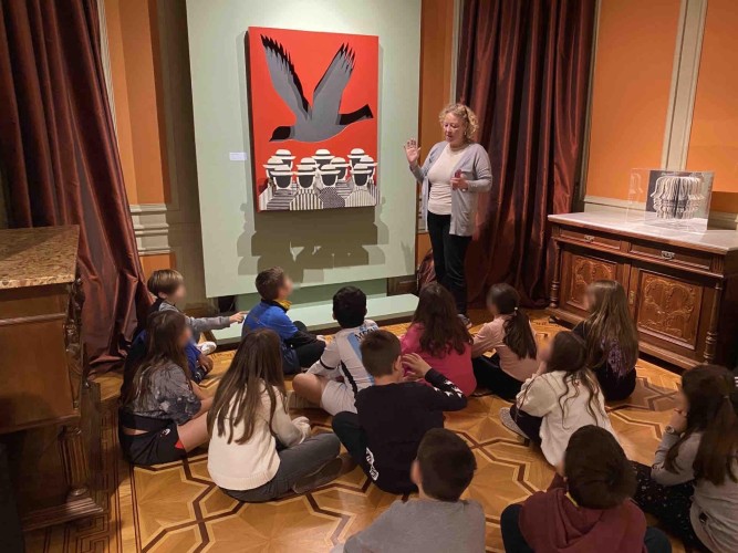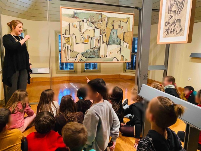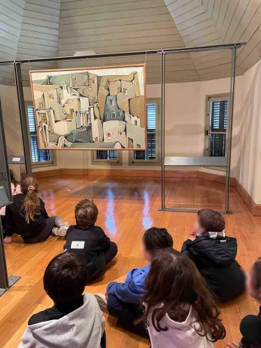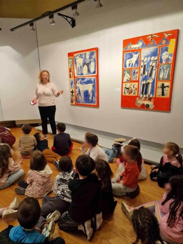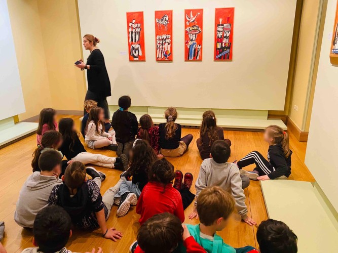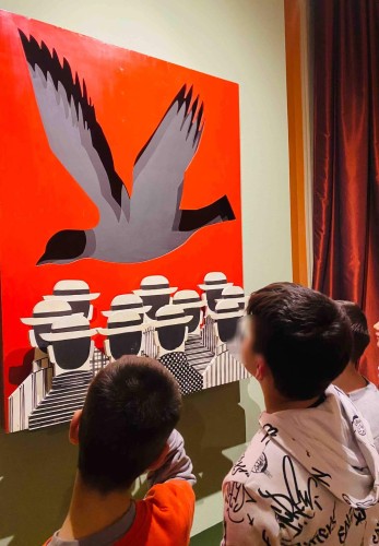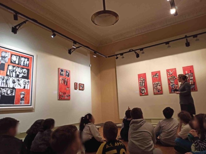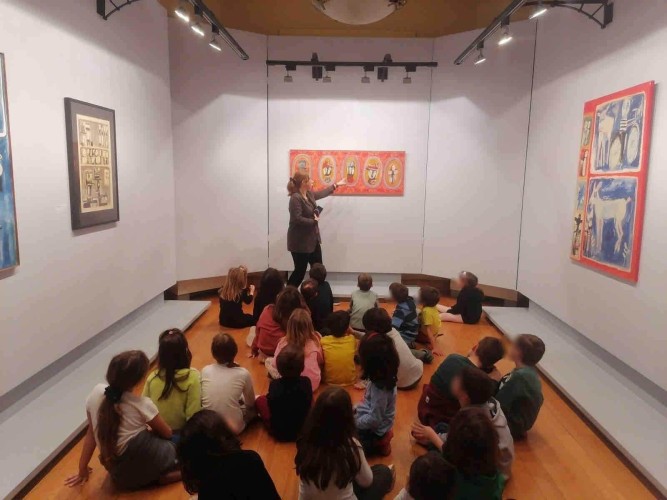 10 Απριλίου 2024Ένα ταξίδι στον κόσμο ενός πρωτοπόρου Έλληνα εικαστικού έκαναν τα παιδιά μας του Δημοτικού την Παρασκευή 1 και την Τρίτη 5 Μαρτίου. Οι μαθητές μας επισκέφθηκαν την έκθεση για τα 100 χρόνια γέννησης του Γιάννη Γαΐτη, η οποία παρουσιάστηκε στη Δημοτική Πινακοθήκη Θεσσαλονίκης. Στη διάρκεια της εξαιρετικής ξενάγησης άκουσαν με ενδιαφέρον για τα κοινωνικά μηνύματα που επιδίωκε να μεταδώσει με τις δημιουργίες του ο καλλιτέχνης. Τα ζωντανά χρώματα των έργων του εντυπωσίασαν τα παιδιά μας, εμπνεύστηκαν από αυτά και φιλοτέχνησαν τις δικές τους δημιουργίες στο μάθημα της Εικαστικής Αγωγής!