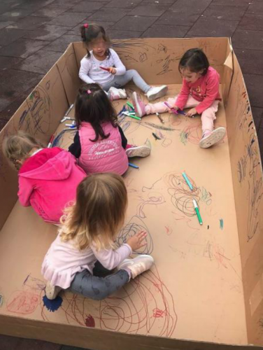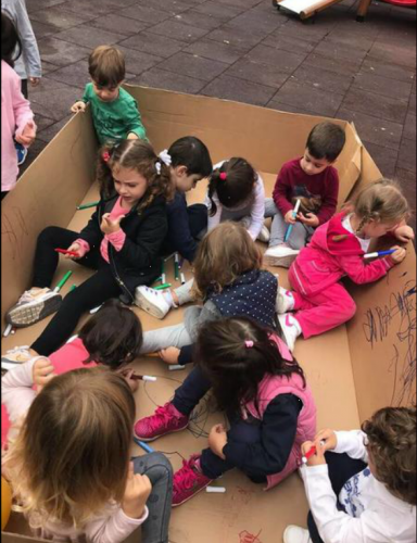 Ένα νέο παιχνίδι ήρθε να προστεθεί στην αυλή του Παιδικού μας Σταθμού συσκευασμένο φυσικά σε χαρτοκιβώτιο. Η ανεξάντλητη φαντασία των μικρών μας όμως μετέτρεψε το χαρτοκιβώτιο σε καράβι, που το ήθελαν μάλιστα και πολύχρωμο. Έτσι οι εκπαιδευτικοί τους έδωσαν μαρκαδόρους και ξηλομπογιές, κάθισαν στο... κατάστρωμα και με σοβαρότητα επιδόθηκαν στη μετατροπή!