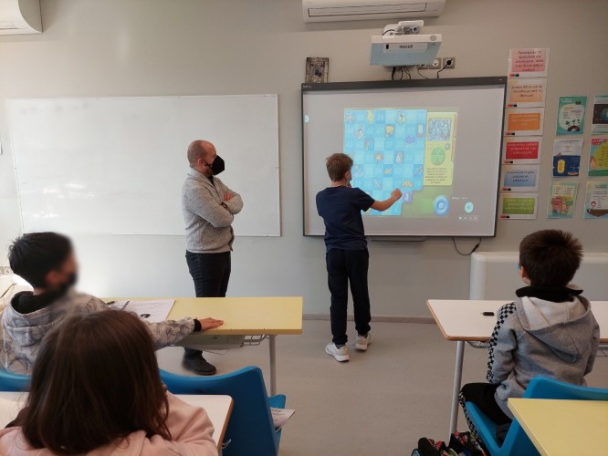 27 Ιανουαρίου 2022Τα παιδιά μας της Ε’ Τάξης στο πλαίσιο των Εργαστηρίων Δεξιοτήτων τους με θεματική: «Γνωρίζω τις φυσικές καταστροφές» πραγματοποίησαν μια σειρά από ασκησούλες στο διαδραστικό πίνακα της τάξης τους. Ειδικότερα, έλυσαν κουίζ για την κατάλληλη συμπεριφορά μας σε περίπτωση σεισμού, οδήγησαν τις διαδικτυακές φιγούρες του παιχνιδιού με ασφάλεια προς την έξοδο του παιχνιδιού, άκουσαν τραγούδια σχετικά με την αντίδραση μας σε περίπτωση σεισμού και συζήτησαν με τους δασκάλους τους γι’ αυτόν, αλλά και για άλλες φυσικές καταστροφές.