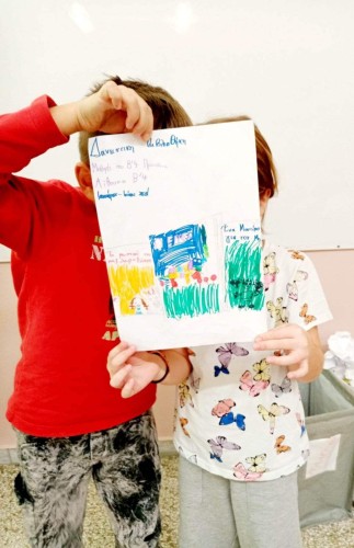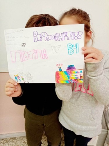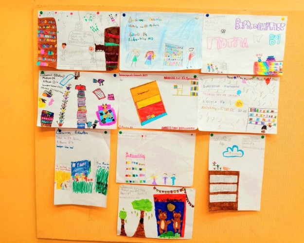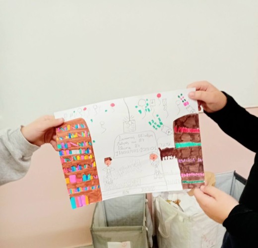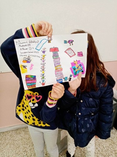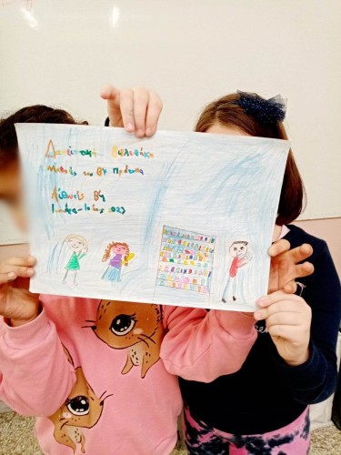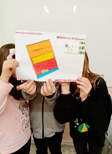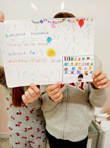 Στη συνέχεια, προχώρησαν στη δημιουργία των δικών τους αφισών με θέμα τη δανειστική βιβλιοθήκη που ξεκίνησε να λειτουργεί στην τάξη τους.