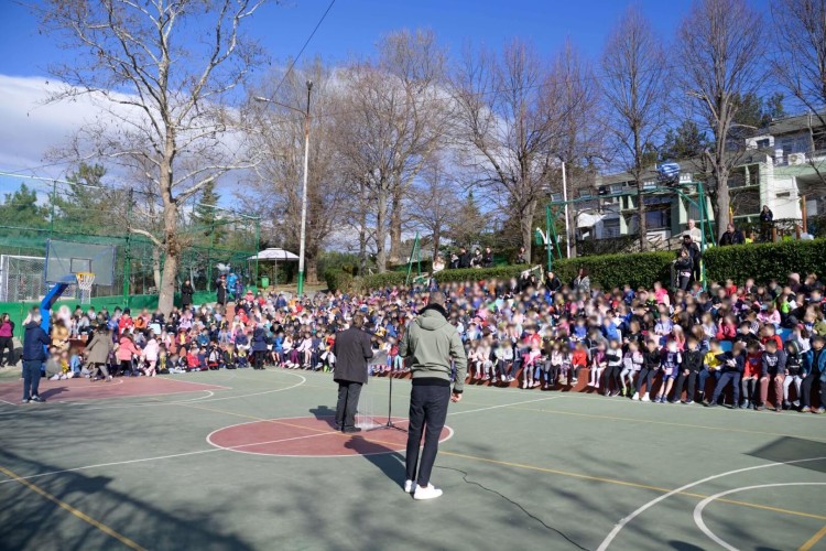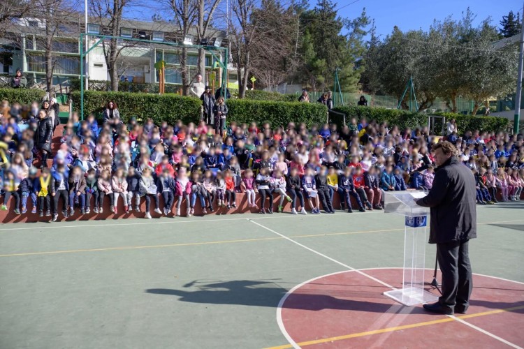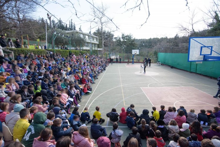 01 Φεβρουαρίου 2023Τα παιδιά του Δημοτικού μας συγκεντρώθηκαν στο γήπεδο μπάσκετ και παρακολούθησαν την ομιλία του διεθνώς καταξιωμένου ποδοσφαιριστή και Αντιπεριφερειάρχη Ψηφιακής Διακυβέρνησης, Άγγελου Χαριστέα, για τη σημασία του αλληλοσεβασμού μεταξύ συμπαικτών και φιλάθλων, καθώς και του ευ αγωνίζεσθαι.
