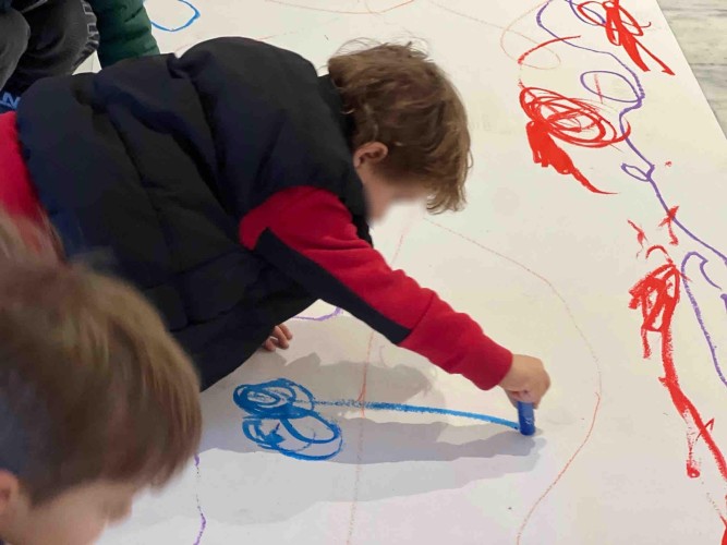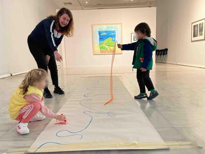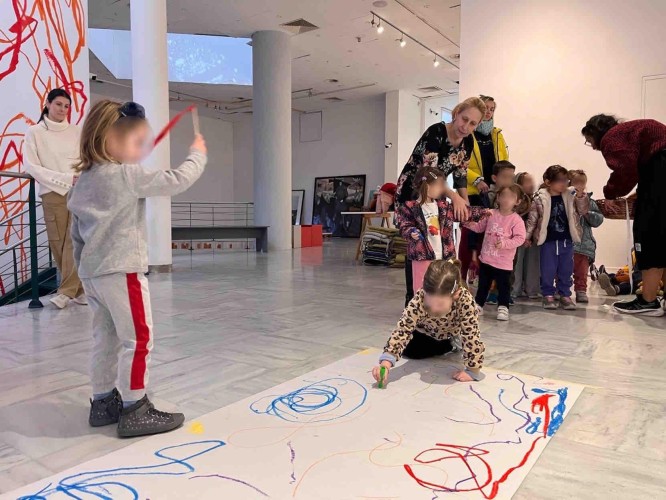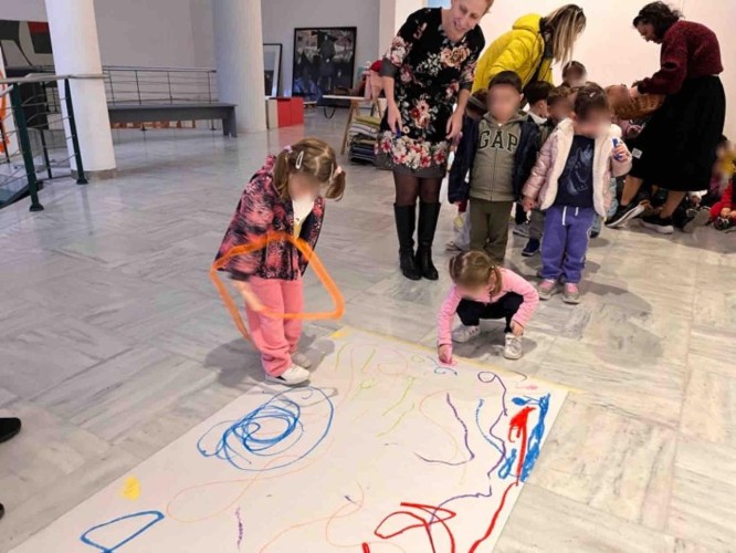 15 Μαρτίου 2024Πορτοκαλί και κόκκινες γραμμές ταξιδεύουν, σκαρφαλώνουν μέχρι το ταβάνι, περικυκλώνουν τα παράθυρα και αφηγούνται ιστορίες, χωρίς να υπάρχει λάθος και σωστό… Τα παιδιά μας του Παιδικού Σταθμού «Πρότυπα 2-4» πειραματίστηκαν με κορδέλες και λαδοπαστέλ συμμετέχοντας στις εικαστικές δραστηριότητες του Μουσείου Σύγχρονης Τέχνης-MOMus την Τετάρτη 13 και την Παρασκευή 15 Μαρτίου. Οι μικροί μας δημιουργοί έδωσαν τη δική τους καλλιτεχνική ματιά στο έργο του Otto Zitko, «Χωρίς σβήστρα» που αποτελεί μόνιμο στοιχείο του χώρου και μαζί με τους ειδικούς μουσειο-παιδαγωγούς παρατήρησαν μια διαφορετική έκφραση της τέχνης.