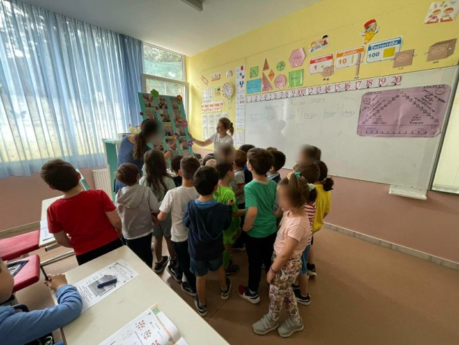 04 Ιουνίου 2023Στο πλαίσιο της ομαλής μετάβασης από το νηπιαγωγείο στο δημοτικό σχολείο τα παιδιά μας του νηπιαγωγείου επισκέφθηκαν την Α' Δημοτικού για να μπορέσουν να προσαρμοστούν πιο εύκολα στο νέο ξεκίνημα που θα κάνουν με την έναρξη της επόμενης σχολικής χρονιάς. Τα νηπιάκια μας είδαν το σχολικό κτήριο, περιηγήθηκαν στις τάξεις και κάθισαν στα θρανία. Επίσης, η δασκάλα απάντησε σε κάθε προβληματισμό και απορία που εξέφρασαν, πήραν συνέντευξη από τα "έμπειρα" πρωτάκια μαθαίνοντας τα "μυστικά" της "επιβίωσης" και διαπίστωσαν τις διαφορές και τις ομοιότητες της καθημερινότητας.