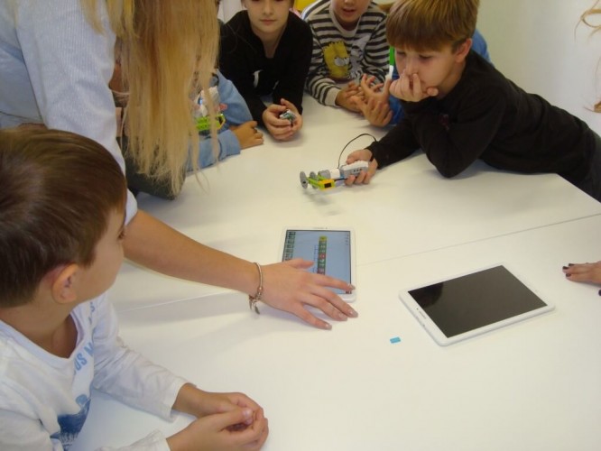 Τα παιδιά μας έπαιξαν και έμαθαν καινούργιες έννοιες στα αγγλικά , προγραμμάτισαν σβούρες και ρομποτάκια σε συνεργασία με τις εκπαιδευτικούς και με την καθοδήγησή τους και όλα αυτά στην αγγλική γλώσσα.