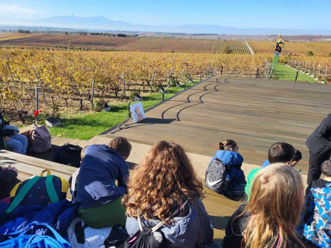 12 Δεκεμβρίου 2023Συμμετέχοντας στο Εκπαιδευτικό πρόγραμμα με θέμα «Αμπελουργία και Εκπαιδευτικό Παιχνίδι στο Μουσείο Οίνου» οι μαθητές μας της Γ΄ τάξης εξερεύνησαν στο κτήμα Γεροβασιλείου το αμπέλι και έμαθαν για τα εργαλεία καλλιέργειας και επεξεργασίας του. Εξοικειώθηκαν με τις βασικές αγροτικές εργασίες και τις διαδικασίες παραγωγής του κρασιού, γνώρισαν την παράδοση, κατανόησαν τον ανθρώπινο μόχθο, τη σημαντικότητα της τεχνογνωσίας, αντιλήφθηκαν την ανάγκη της αρμονικής συνύπαρξης και συνεργασίας του ανθρώπου με τη φύση.