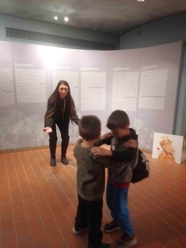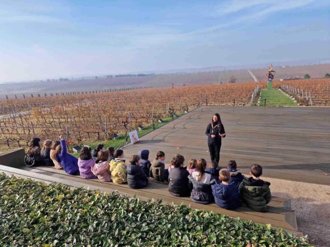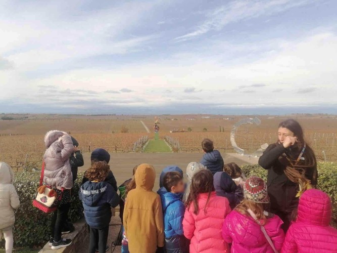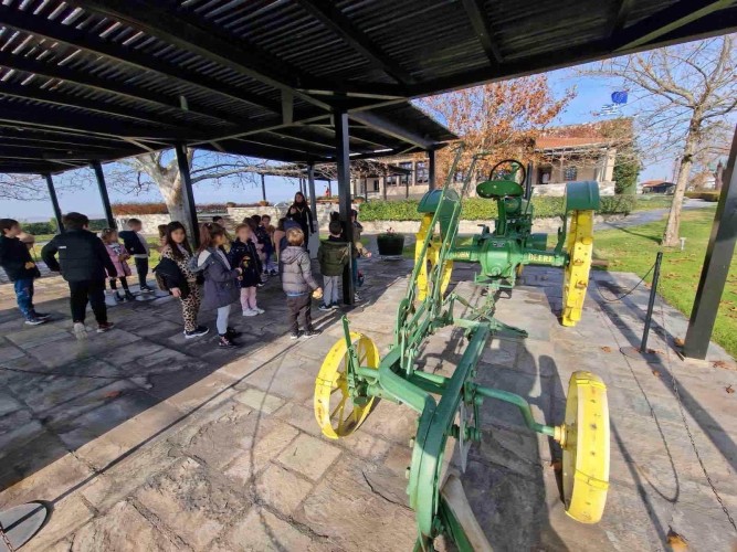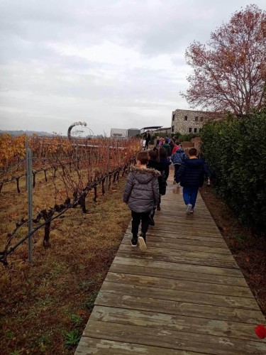 18 Δεκεμβρίου 2023Μέσα στον Δεκέμβριο τα τμήματα της Α΄ τάξης, σε διαφορετική ημέρα το καθένα, επισκέφθηκαν το «Κτήμα Γεροβασιλείου», στο πλαίσιο του εργαστηρίου δεξιοτήτων σχετικά με τη διατροφή. Εκεί οι μαθητές μας ξεναγήθηκαν στους αχανείς αμπελώνες και έμαθαν τα πάντα για το αμπέλι. Έπειτα, περιηγήθηκαν στο μουσείο και θαύμασαν τη μεγάλη συλλογή από ανοιχτήρια πολλών ετών του κ. Γεροβασιλείου και παράλληλα είδαν όλα τα παλιά, αλλά και τα σύγχρονα μέσα που χρησιμοποιούνται σε ένα οινοποιείο για να φτιάξουμε το κρασί! Στη συνέχεια τα παιδιά μας φορώντας τα «γυαλιά της φαντασίας» ταξίδεψαν με τους κυρίους... Τσαμπίγκο, Αγησίλαγο και Φροίνο και έμαθαν πώς φτιάχνονται ο μούστος, το κρασί και τα μουστοκούλουρα. Ακόμα, έπαιξαν βιωματικά παιχνίδια και έδωσαν μορφή σε ό,τι τους έκανε εντύπωση με τη βοήθεια του πηλού, ενισχύοντας με αυτόν τον τρόπο τη λεπτή τους κινητικότητα και εκφράζοντας ταυτόχρονα τη δημιουργικότητά τους. Τέλος, διάβασαν το παραμύθι «Τα μουστοκούλουρα του Αγησίλαγου» του Δ. Μπασλάμ και μπήκαν μαζί με τους ήρωές του σε μεγάλες οινοπεριπέτειες... Οι μαθητές μας γέμισαν από γνώσεις και εικόνες, οι οποίες σίγουρα θα τους μείνουν αξέχαστες.