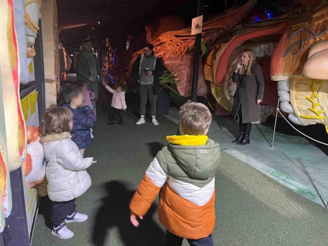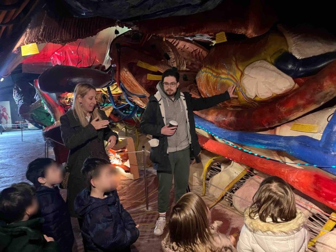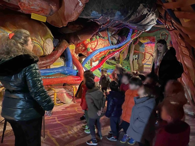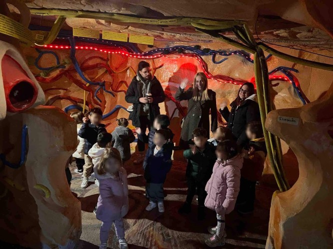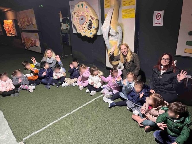 23 Φεβρουαρίου 2024Πώς θα σας φαινόταν αν βρισκόσασταν μέσα σε ένα ανθρώπινο στόμα ή σε έναν ανθρώπινο εγκέφαλο; Τα μικρά μας του Παιδικού Σταθμού «Πρότυπα 2-4» βίωσαν ένα φανταστικό ταξίδι στους χώρους του Human Body Museum την Πέμπτη 1 και την Παρασκευή 2 Φεβρουαρίου. Εκεί περπάτησαν σε ένα γιγαντιαίο ανθρώπινο σώμα μήκους πενήντα μέτρων, όπου παρατήρησαν την καρδιά, τους πνεύμονες, τον εγκέφαλο και τα υπόλοιπα όργανα και μέρη του σώματος, προκειμένου να διαπιστώσουν πώς ακριβώς λειτουργεί και πόσο σημαντικό είναι να το φροντίζουμε για να παραμένει υγιές. Πρωτόγνωρες εικόνες, ήχοι και μορφές τα συνεπήραν κατά την περιήγησή τους. Μετά από αυτή τη μοναδική εμπειρία κατάφεραν να απαντήσουν σε ερωτήματα, όπως «γιατί έχουμε κόκκαλα;», «πού πηγαίνει το φαγητό;», «γιατί μεγαλώνουν τα μαλλιά μας;», που προέκυψαν κατά την ενασχόληση με τη θεματική μας ενότητα «Γνωρίζω το σώμα μου».