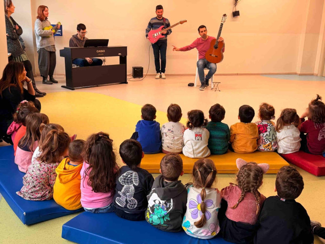 24 Ιανουαρίου 2025Οι μαθητές μας του Παιδικού Σταθμού «Πρότυπα 2-4» στο πλαίσιο της θεματικής ενότητας «Ήχοι και μουσικές» γνώρισαν το Πρότυπο Ωδείο Θεσσαλονίκης με μια επίσκεψη σε αυτό. Τα μικρά μας με έντονη περιέργεια γνώρισαν τα μουσικά όργανα, παρατήρησαν τις παρτιτούρες και έμαθαν για την ορχήστρα αλλά και τον μαέστρο που είναι υπεύθυνος για τον άρτιο συντονισμό της. Περιεργάστηκαν και στη συνέχεια πειραματίστηκαν με το πιάνο, το φλάουτο, την κιθάρα και το βιολί δημιουργώντας τις δικές τους πρώτες μελωδίες. Ακόμα οι μουσικο-διδάσκαλοί μας χάρισαν μια μοναδική ζωντανή παράσταση με τραγούδια της ελληνικής και ξένης μουσικής σκηνής ενώ τα παιδιά συνόδευσαν με τη φωνή και τον χορό τους.