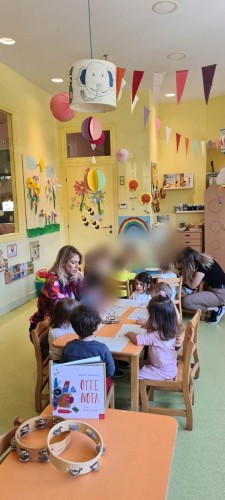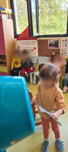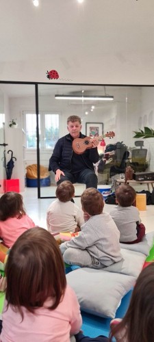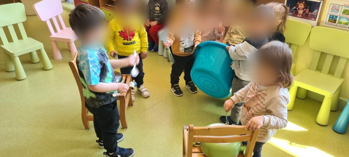 27 Απριλίου 2023Τα μικρά μας του Παιδικού Σταθμού "Πρότυπα 2-4" επισκέφθηκαν το βιβλιοπωλείο "dadoo" όπου παρακολούθησαν τη διαδραστική παρουσίαση του βιβλίου "Ούτε νότα" από τον συγγραφέα και μουσικό Θοδωρή Παπαϊωάννου. Στο πλαίσιό της κατασκεύασαν επίσης αυτοσχέδια μουσικά όργανα και τραγούδησαν όλα μαζί αγαπημένα παιδικά τραγούδια.