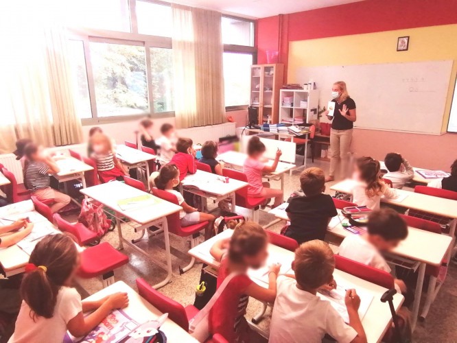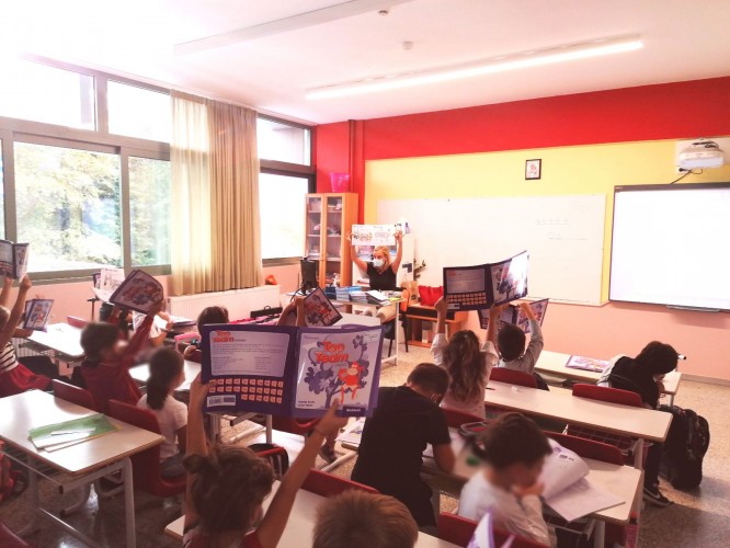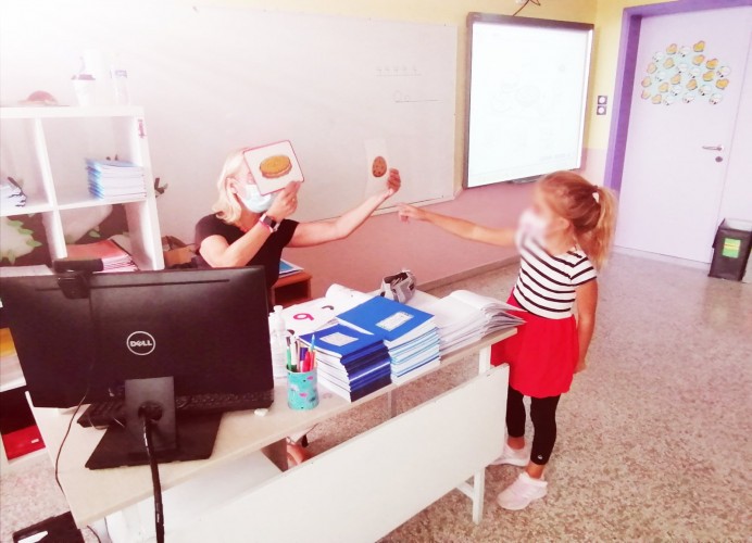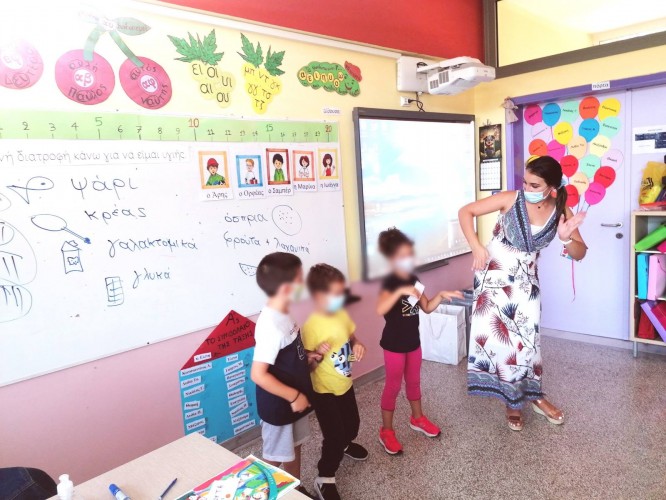 22 Σεπτεμβρίου 2021Με τη διατροφή και την υγεία καταπιάνονται αυτήν την εβδομάδα οι μαθητές της Α’ τάξης του Δημοτικού μας τόσο στο μάθημα της Νεοελληνικής Γλώσσας όσο και σ’ αυτό των Αγγλικών. Τα παιδιά μας μέσω της γραφής, της ζωγραφικής, των τραγουδιών και παιχνιδιών, αλλά και των παρουσιάσεων στους διαδραστικούς πίνακες μαθαίνουν για τις τροφές, αλλά και για την αξία της υγιεινής διατροφής. Τραγούδια και ορθογραφία στα ελληνικά, flashcards και παιχνίδια στα αγγλικά, τελικά καταλήξαμε: Ένα μήλο την ημέρα τον γιατρό τον κάνει πέρα.