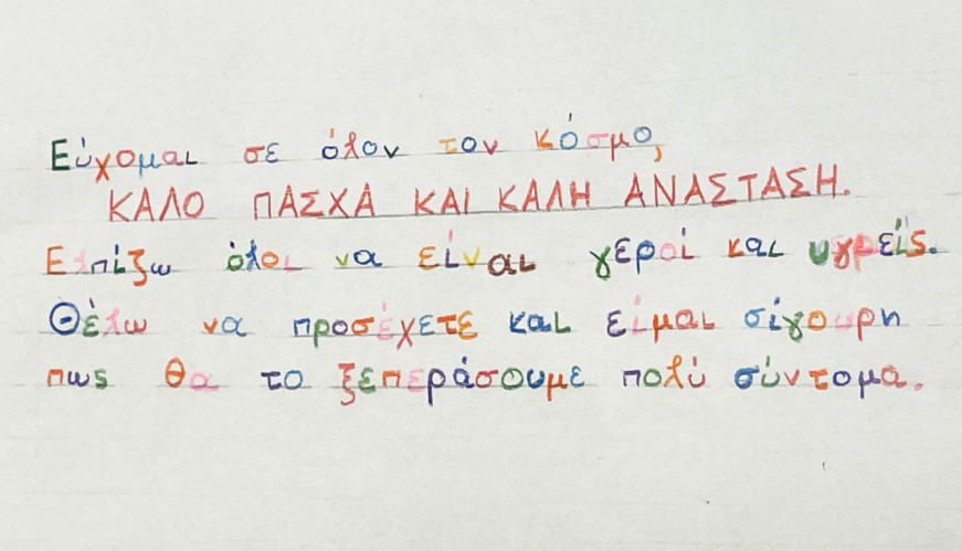 23 Απριλίου 2021Την Παρασκευή 23 Απριλίου όλοι οι μαθητές μας της Γ΄ τάξης αντάλλαξαν ευχές για το Πάσχα, ενώ συμφώνησαν ότι τους λείπει το Σχολείο τους και εξέφρασαν την επιθυμία σύντομα να συναντηθούν και πάλι σ’ αυτό.
