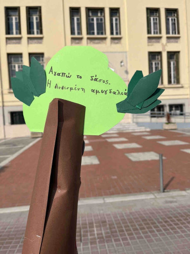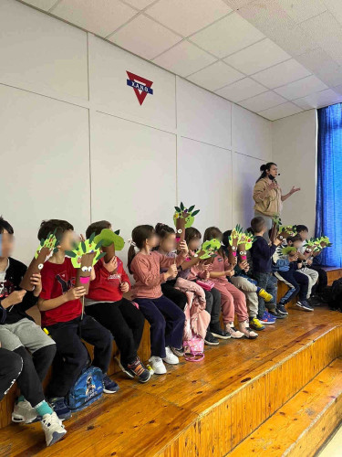 12 Φεβρουαρίου 2025Στο πλαίσιο της τρίτης θεματικής ενότητας των Εργαστηρίων Δεξιοτήτων «Φροντίζω το Περιβάλλον» με τίτλο: «Περιβάλλον… είσαι για όλους», oι μαθητές μας της Α΄ τάξης επισκέφθηκαν τη ΧΑΝΘ και συμμετείχαν στο δημιουργικό εργαστήριο κούκλας με θέμα το περιβάλλον. Τα παιδιά παρακολούθησαν κουκλοθεατρική παράσταση με τίτλο: «Ο ξυλοκόπος και το δάσος» κι έμαθαν για τη φύση και τα ζώα. Στη συνέχεια, με ανακυκλώσιμα υλικά κατασκεύασαν τη δική τους κούκλα και μιμήθηκαν τις φωνές των ηρώων της παράστασης. Στην κατασκευή τους έγραψαν ιδιαίτερα μηνύματα για το περιβάλλον όπως: «Το δάσος αγαπάμε και δεν το χαλάμε!», «Αγαπάμε τη φύση!», «Το δάσος το κρατάμε καθαρό!», «Αγαπώ το δάσος!».