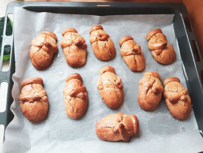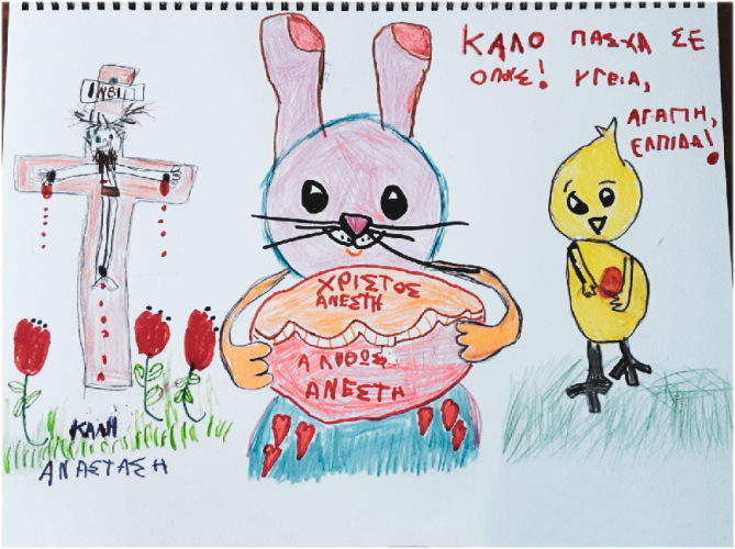 24 Απριλίου 2021Την Παρασκευή 23 Απριλίου τα παιδιά μας του Νηπιαγωγείου και του Παιδικού Σταθμού «Πρότυπα 2-4» περιμένοντας το Σάββατο του Λαζάρου έφτιαξαν, σύμφωνα με το έθιμο, τα γνωστά σε όλους μας λαζαράκια! Ενθουσιασμένα έγιναν μια παρέα, φόρεσαν τις ποδιές τους κι ακολούθησαν βήμα - βήμα τη συνταγή για τα λαχταριστά αυτά παραδοσιακά εδέσματα, πάντα με την καθοδήγηση των εκπαιδευτικών μας και φυσικά όλων των γονιών στο σπίτι. Επιπλέον, λίγο πριν ανταλλάξουν ευχές και αποχαιρετιστούν για τις πασχαλινές διακοπές, φιλοτέχνησαν χρωματιστές πασχαλινές κάρτες, έφτιαξαν καλαθάκια-πασχαλίτσες, στόλισαν στεφανάκια αλλά και τις λαμπάδες τους με λαγουδάκια, έβαψαν αβγά με διάφορες τεχνικές και τραγούδησαν τα κάλαντα του Λαζάρου.