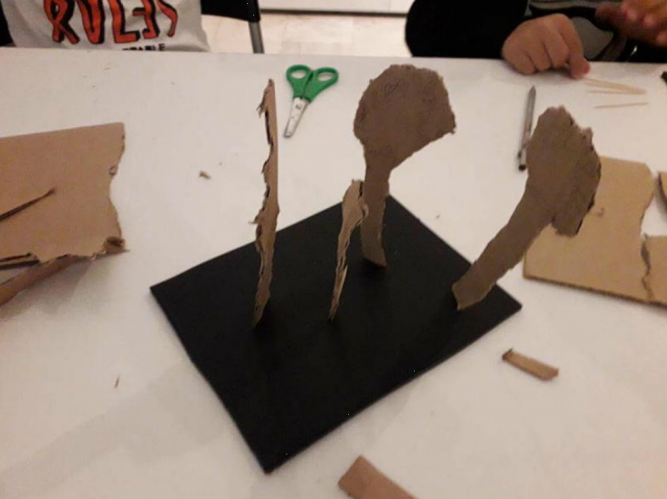 Μετά την προβολή συζητήσαμε με τα παιδιά, μοιραστήκαμε τις σκέψεις μας και αυτά που μας έκαναν εντύπωση στο ντοκυμαντέρ αυτό. Έπειτα με την καθοδήγηση των μουσειοπαιδαγωγών ξεναγηθήκαμε σε κάποιες γωνιές του Μουσείου και μελετήσαμε συγκεκριμένα έργα ενός γλύπτη, διαφορετικού για κάθε τμήμα. Γεμάτοι έμπνευση καθίσαμε στα μεγάλα τραπέζια των εικαστικών εργαστηρίων και δημιουργήσαμε τα δικά μας τρισδιάστατα έργα τέχνης. Τα παιδιά ενθουσιάστηκαν και αφέθηκαν στη μαγεία της δημιουργίας.