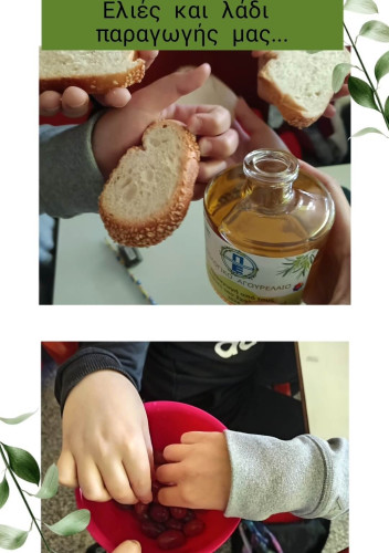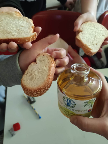 04 Μαρτίου 2026Ελιά, το θεμέλιο της μεσογειακής διατροφής, από την οποία παράγεται το ελαιόλαδο, ο «πράσινος χρυσός». Στο πλαίσιο του μαθήματος της Μελέτης Περιβάλλοντος οι μαθητές μας της Γ΄ τάξης έμαθαν περισσότερες πληροφορίες για τα ελαιόδεντρα, τα οποία αφθονούν στη χώρα μας. Μέσα από τη συζήτηση αντιλήφθηκαν πόσο σημαντικά είναι για την ελληνική φύση και την παράδοσή μας από τα αρχαία χρόνια ως σύμβολο της ειρήνης. Η μάθηση δεν έμεινε μόνο στη θεωρία! Τα παιδιά είχαν την ευκαιρία να δοκιμάσουν ελαιόλαδο και ελιές από τους ελαιώνες που υπάρχουν στην αυλή του Σχολείου μας. Με βιωματικό τρόπο λοιπόν, αντιλήφθηκαν πώς η ελιά συνδέεται με την καθημερινή μας ζωή έχοντας πρωταγωνιστικό ρόλο στα γεύματά μας.