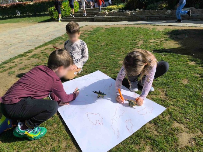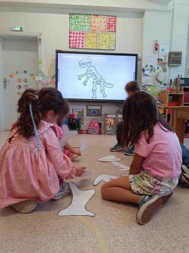 19 Απριλίου 2024Τα παιδιά μας των Προνηπίων έζησαν για λίγο ένα μικρό… «Jurassic Park»! Από τη Δευτέρα 8 έως την Παρασκευή 19 Απριλίου έμαθαν για τους δεινόσαυρους, τα σπονδυλωτά ζώα που κυριάρχησαν στον πλανήτη μας για πάνω από 160 εκατομμύρια χρόνια. Με την περιέργεια και τη φιλομάθεια που τα διακρίνει απορρόφησαν κάθε λεπτομέρεια για τα πρωτόγονα αυτά πλάσματα. Αποκόμισαν γνώσεις μέσα από εκπαιδευτικά βίντεο και εποπτικό υλικό, βγήκαν στην αυλή του Σχολείου όπου ανακάλυψαν απολιθωμένα «κόκκαλα» και σαν αληθινοί παλαιοντολόγοι δημιούργησαν τον σκελετό ενός Τυραννόσαυρου. Κατασκεύασαν πήλινα κρεμαστά κολιέ με δόντια δεινοσαύρων, πειραματίστηκαν προκαλώντας μία εντυπωσιακή έκρηξη ηφαιστείου και έπαιξαν παιχνίδια ρόλων που έδωσαν την ευκαιρία στα παιδιά να μεταμορφωθούν στα γιγάντια αυτά πλάσματα. Η ενότητα ολοκληρώθηκε με επίσκεψη στο πάρκο των δεινοσαύρων, όπου τα παιδιά είχαν την ευκαιρία να δουν από κοντά σε φυσικά μεγέθη κάποια από τα πιο γνωστά είδη τους.
