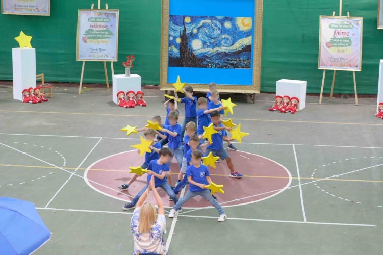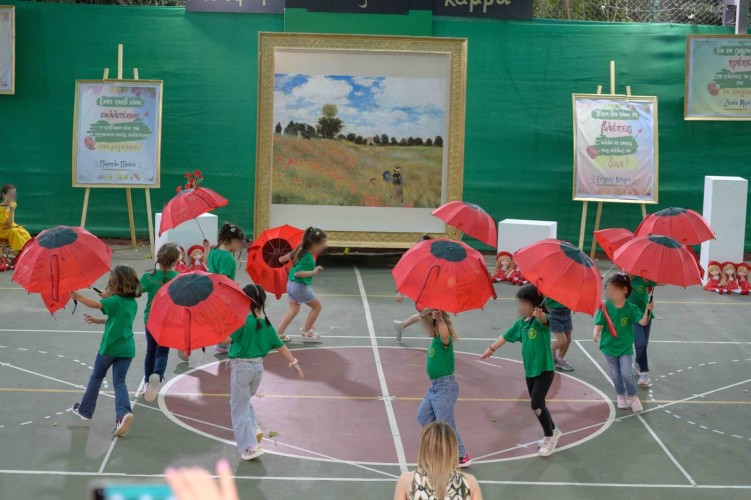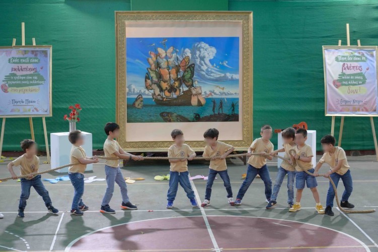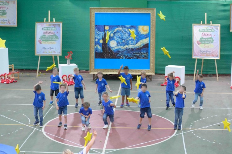 05 Ιουνίου 2024Τα παιδιά μας του Νηπιαγωγείου στη διάρκεια της σχολικής χρονιάς έμαθαν για όλες τις μορφές τέχνης και γνώρισαν σπουδαίους ζωγράφους, εμπνεύστηκαν από τις δημιουργίες τους και ανέπτυξαν τη φαντασία τους εκφράζοντας πάντα τα συναισθήματά τους. Η πορεία τους στον συναρπαστικό κόσμο της τέχνης ολοκληρώθηκε τη Δευτέρα 3 και την Τετάρτη 5 Ιουνίου με μια μεγάλη καλοκαιρινή χοροθεατρική παράσταση με τίτλο «Πολύχρωμα Όνειρα σε Καμβά». Οι μαθητές μας με τα μαγικά τους χεράκια και τα φωτεινά τους χαμόγελα σκόρπισαν χρώμα παντού παρουσιάζοντας οκτώ διαφορετικούς πίνακες, μεταξύ των οποίων την «Έναστρη νύχτα» και τη «Μόνα Λίζα», και ανέδειξαν μέσα από τη δική τους ματιά τη μοναδικότητα κάθε καλλιτέχνη. Εμείς ευχόμαστε στα παιδιά μας η τέχνη να αποτελεί πάντα μέσο έκφρασης, χαράς και δημιουργίας στη ζωή τους!