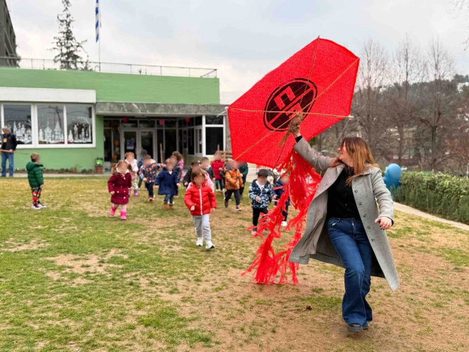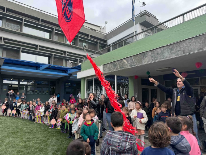 03 Μαρτίου 2025Οι μαθητές μας του Παιδικού Σταθμού «Πρότυπα 2-4» και του Νηπιαγωγείου γιόρτασαν όλοι μαζί τα Κούλουμα στο Σχολείο μας. Τα παιδιά μας με κέφι και χαρά διασκέδασαν με παραδοσιακά παιχνίδια και αποχαιρέτησαν την αποκριάτικη περίοδο. Το τραπέζι γέμισε με νηστίσιμα πιάτα: φασολάδα, ταραμά, λαγάνα και μικροί και μεγάλοι απολαύσαμε τα πεντανόστιμα σαρακοστιανά εδέσματα. Ήρθε η ώρα που οι μαθητές μας με ενθουσιασμό βγήκαν στην καταπράσινη αυλή, χόρεψαν, έπλεξαν το γαϊτανάκι και περίμεναν με ανυπομονησία να πετάξουν τον χαρταετό των Προτύπων Εκπαιδευτηρίων. Μπορεί να μη μας έκανε την χάρη και να μην έμεινε ψηλά στον ουρανό όμως είμαστε σίγουροι πως ήταν μια ξεχωριστή μέρα.