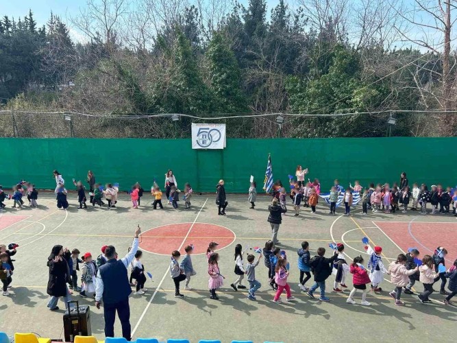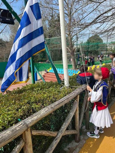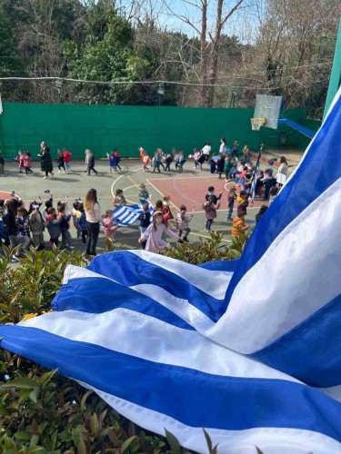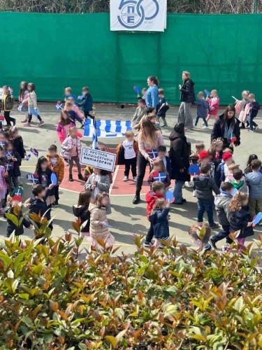 22 Μαρτίου 2024Τα παιδιά μας του Νηπιαγωγείου γιόρτασαν την 25η Μαρτίου τιμώντας τους αγωνιστές του 1821. Την Παρασκευή 22 Μαρτίου οι μαθητές μας των Νηπίων και των Προνηπίων συγκεντρώθηκαν στο γήπεδο του Σχολείου μας και παρέλασαν όλοι μαζί κρατώντας ελληνικές σημαίες και φορώντας τις παραδοσιακές τους στολές.