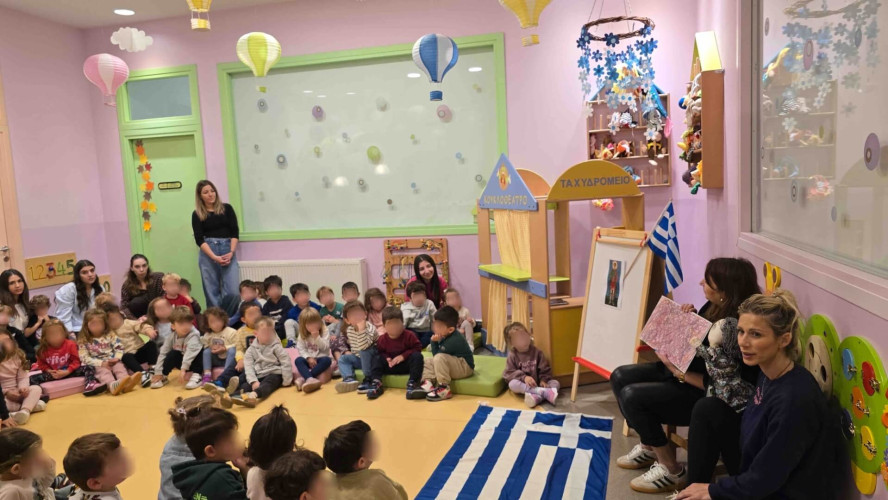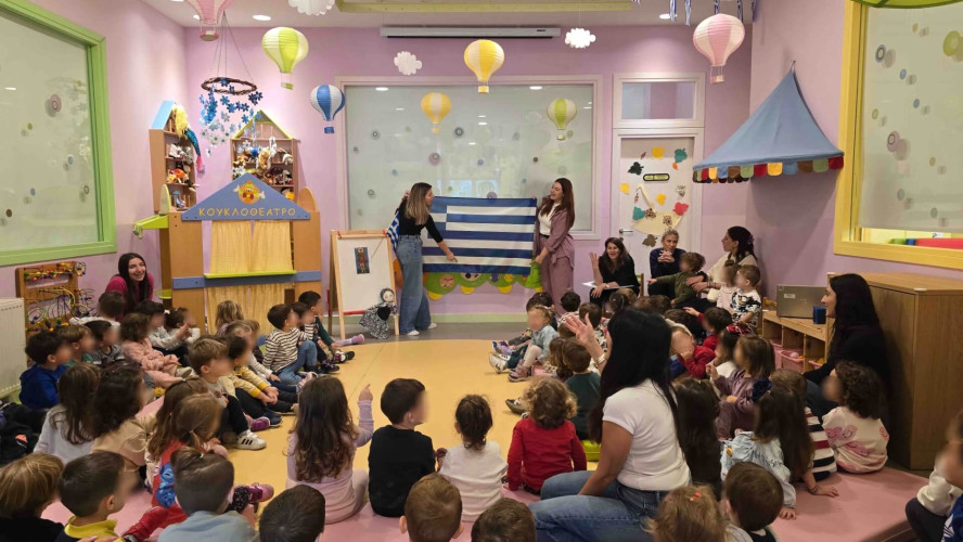 28 Οκτωβρίου 2025Οι μαθητές μας του Παιδικού Σταθμού «Πρότυπα 2-4» συμμετείχαν με τον δικό τους μοναδικό τρόπο στους εορτασμούς της μνήμης του πολιούχου μας Αγίου Δημητρίου, της Ελληνικής Σημαίας και της 28ης Οκτωβρίου. Όλοι μαζί, μια παρεούλα, άκουσαν το παραμύθι «Τα χρώματα έχουν πόλεμο» και κατάλαβαν πως με ειρηνικό τρόπο μπορούμε να λύνουμε τις διαφορές μας. Στη συνέχεια, παρακολούθησαν το κουκλοθέατρο της «γιαγιάς» και έτσι ξεκίνησε η αφήγηση για όσα συνέβησαν το 1940. Τέλος, μέτρησαν τις εννέα ισοπαχείς, οριζόντιες και εναλλασσόμενες λευκές και κυανές παράλληλες λωρίδες της σημαίας μας και έμαθαν για το σύμβολο της πατρίδας μας.